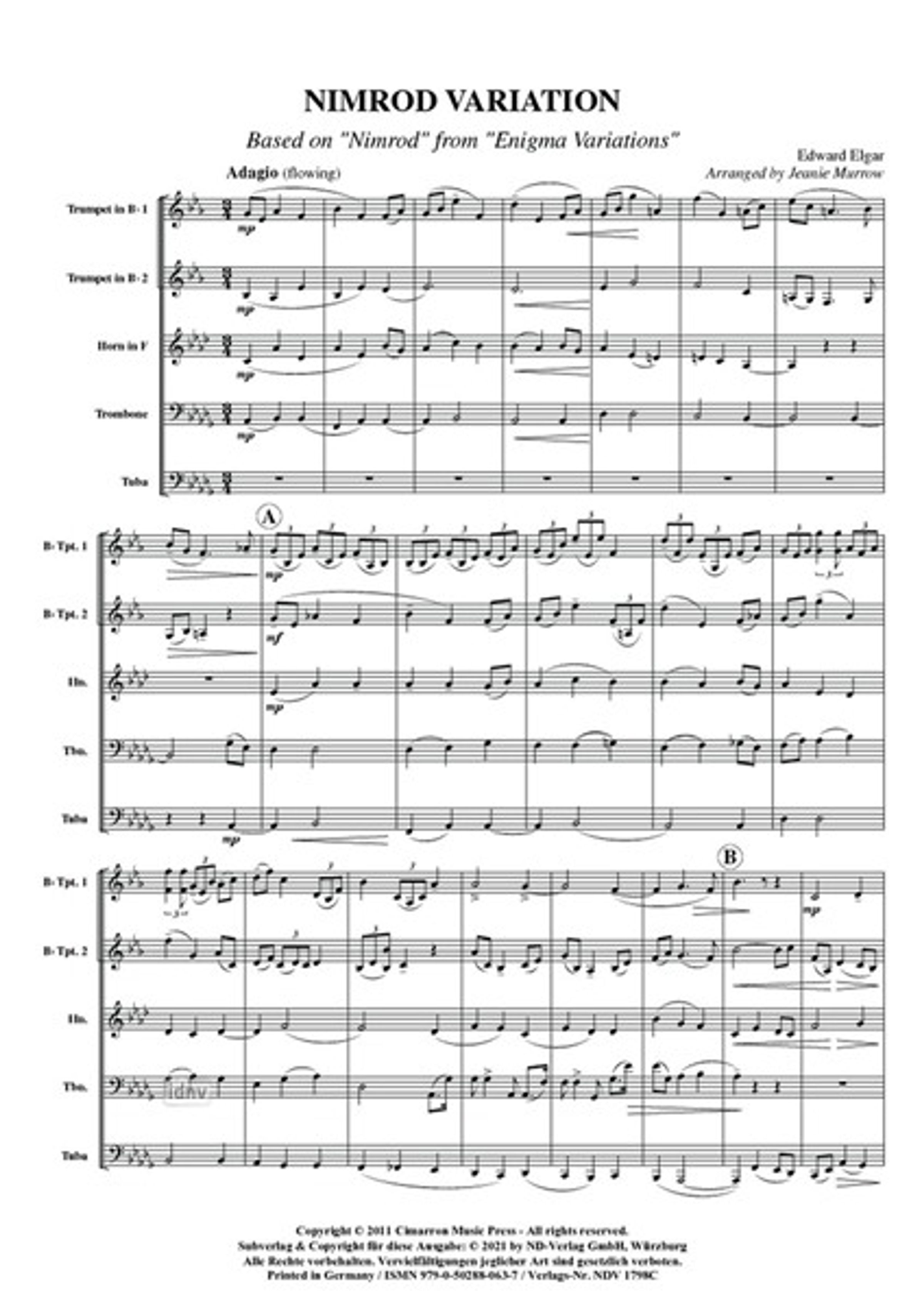 Edward Elgar: Nimrod Blechbläserquintett, Noten, Noten