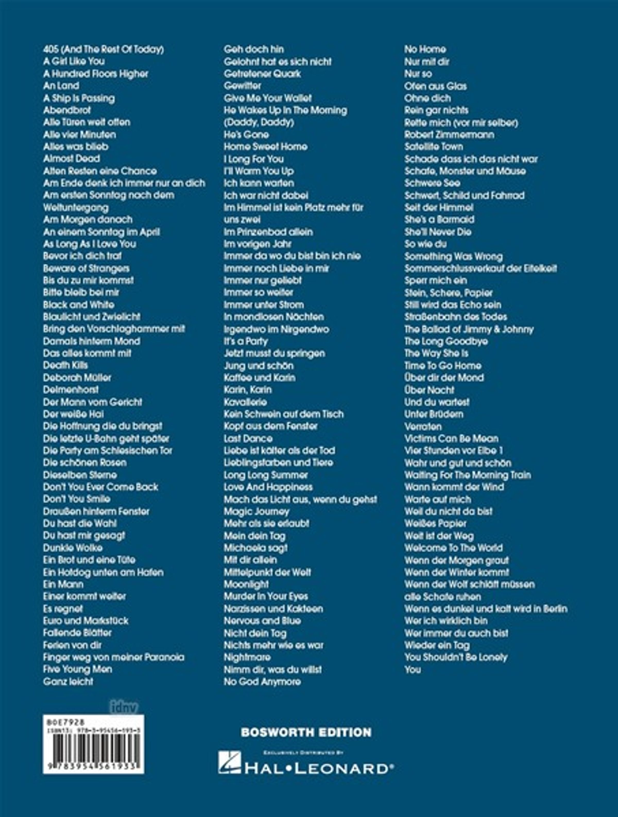 Kaum eine andere deutschsprachige Band ist dafür bekannt, Alltagssituationen so poetisch zu vertonen und mit so unaufgeregt schönen Melodien zu unterlegen wie Element of Crime. Im Oktober 2018 veröffentlicht die Band um Sven Regener ihr zehntes Studioalbum "Schafe, Monster und Mäuse". Das Album darf natürlich in dem einzigen umfassenden Songbuch der Band zu ihrer mehr als 30 jährigen Bandgeschichte nicht fehlen . Deshalb gibt es jetzt eine aktualisierte Neuauflage des Element of Crime Songbooks, welches neben dem neuen Album auch alle bislang veröffentlichten Lieder, unter anderem die Hits "Am Ende denk ich immer nur an dich", "Bring den Vorschlaghammer mit", "Delmenhorst", "Mittelpunkt der Welt" und "Weißes Papier" beinhaltet. Jeder Titel ist mit Melodielinie, vollständigem Text und Akkorden notiert und die Handhabung wird durch eine benutzerfreundliche Spiralbindung vereinfacht. nland herunterladen.Anmerkungen: