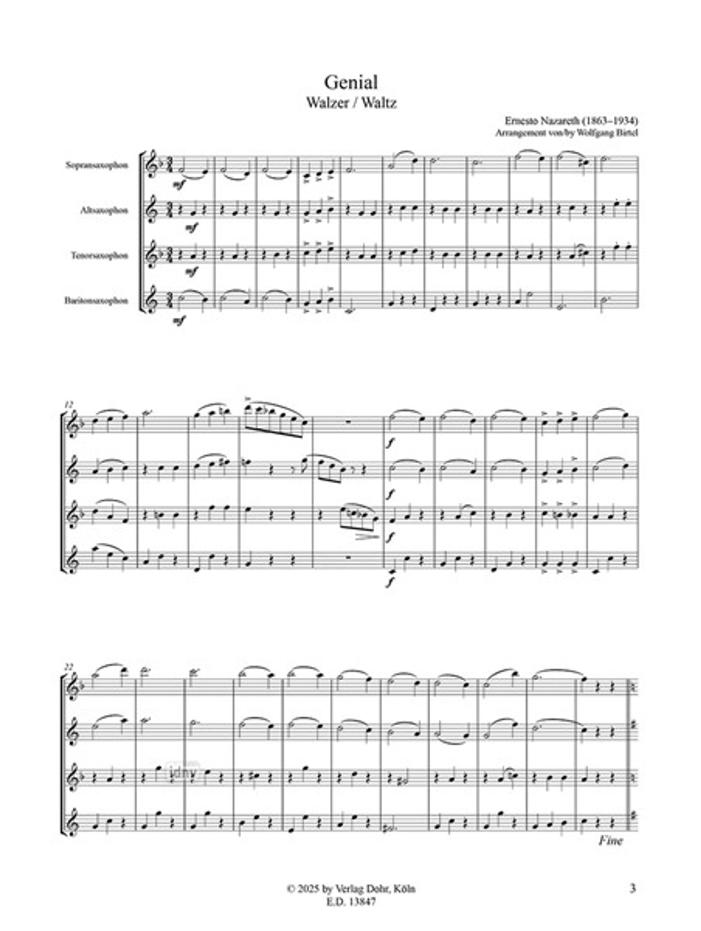 - Sopran-Saxophon, Alt-Saxophon, Tenor-Saxophon, Bariton-Saxophon
