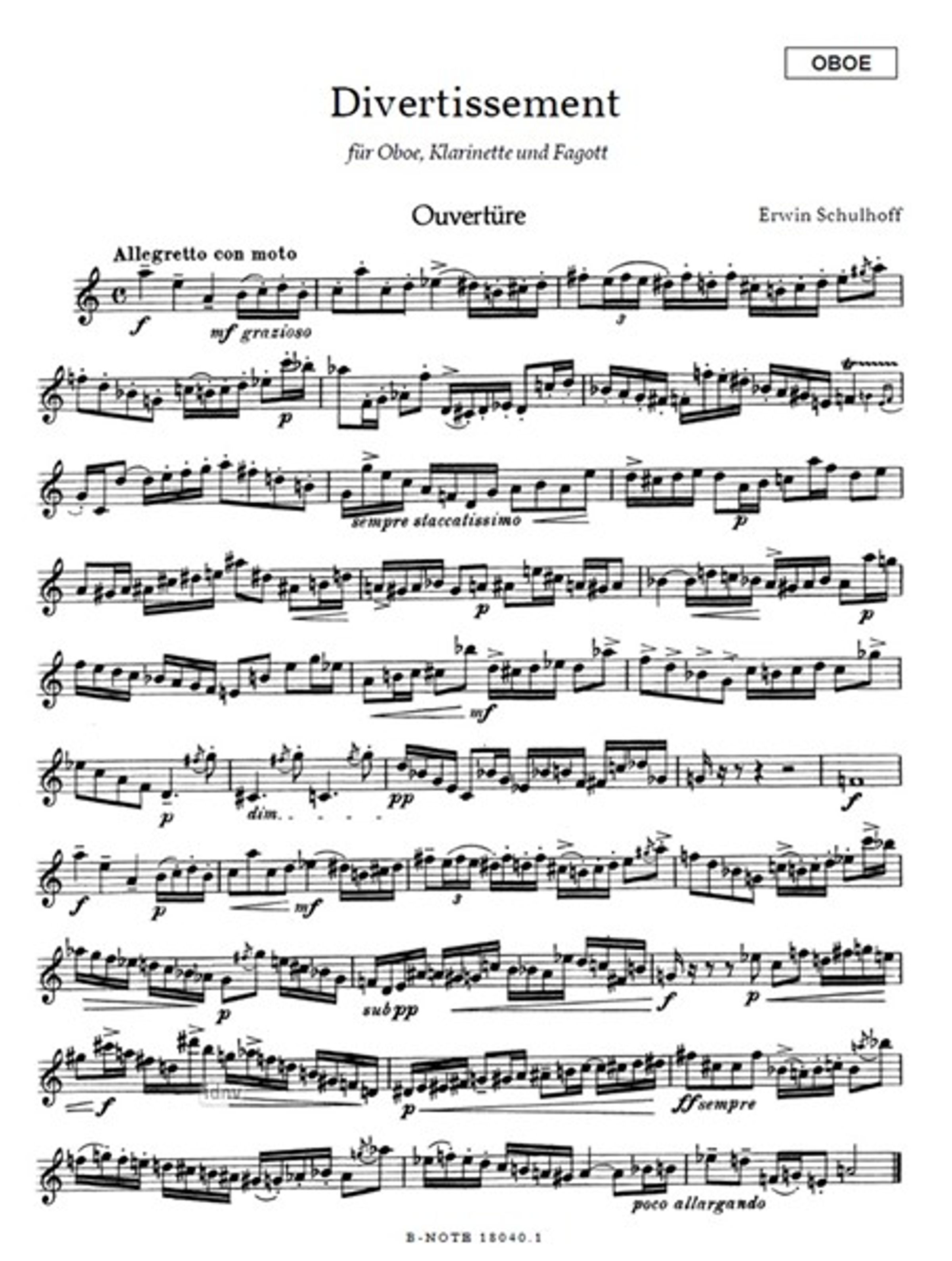 Erwin Schulhoff: Divertissement für Oboe, Klarinette und Fagott (Stimmen)