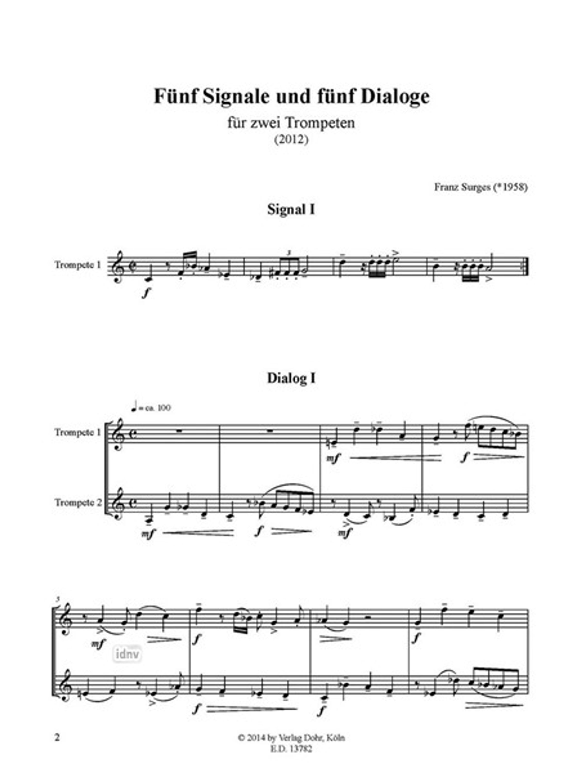Franz Surges: 5 Signale und 5 Dialoge für zwei Trompeten (2012)