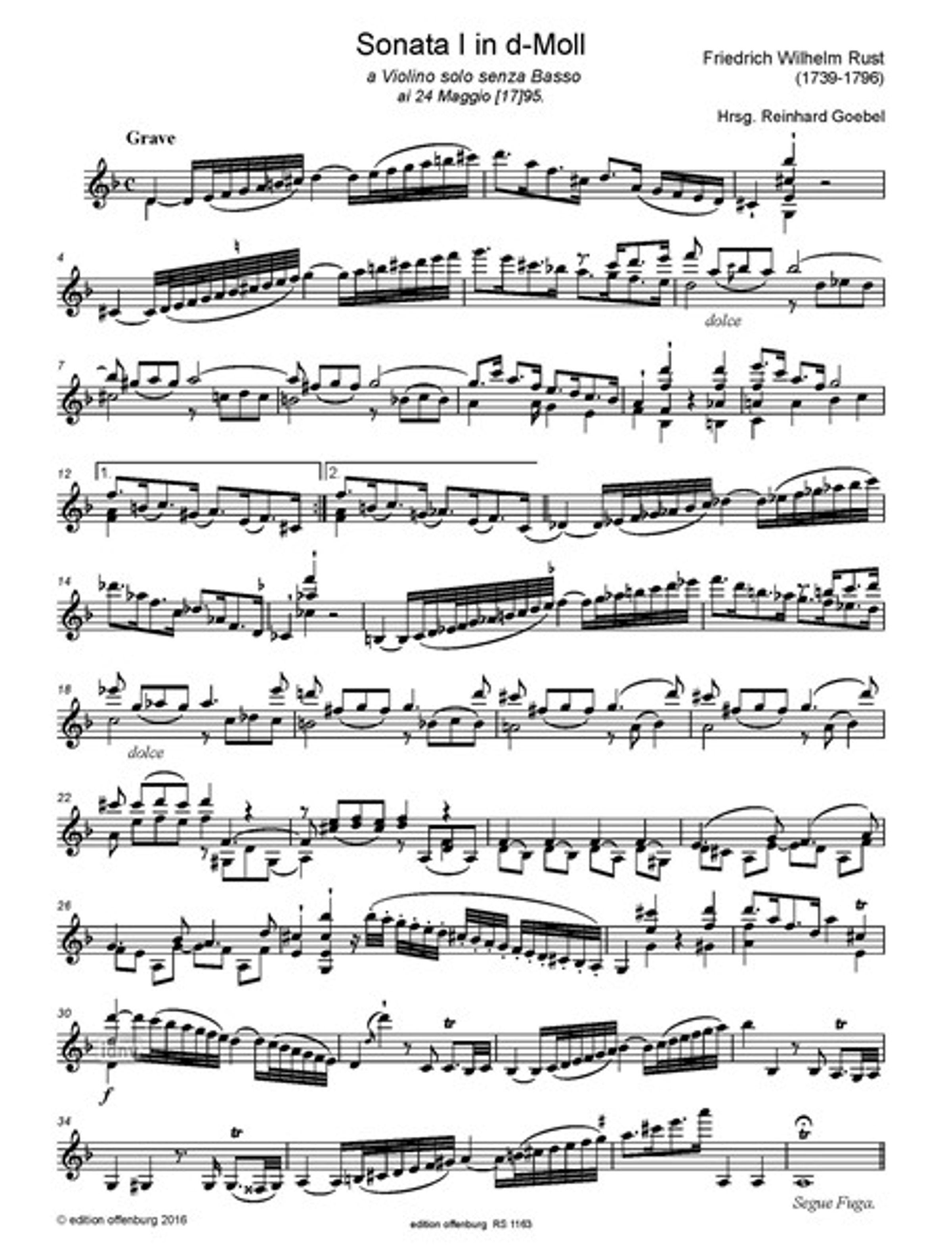 Friedrich Wilhelm Rust: Due Sonate a Violino Solo senza Basso