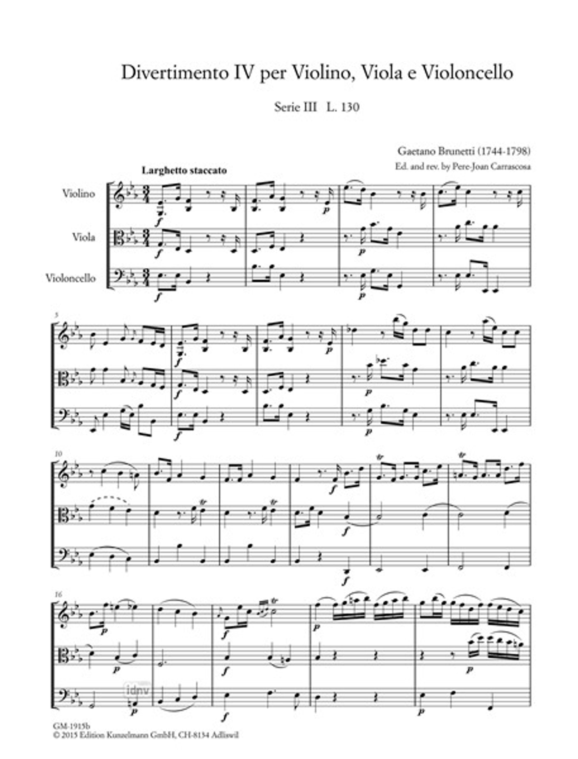 Gaetano Brunetti: 6 Divertimenti für Violine, Viola und Violoncello, Divertimenti 4-6 L. 130-132