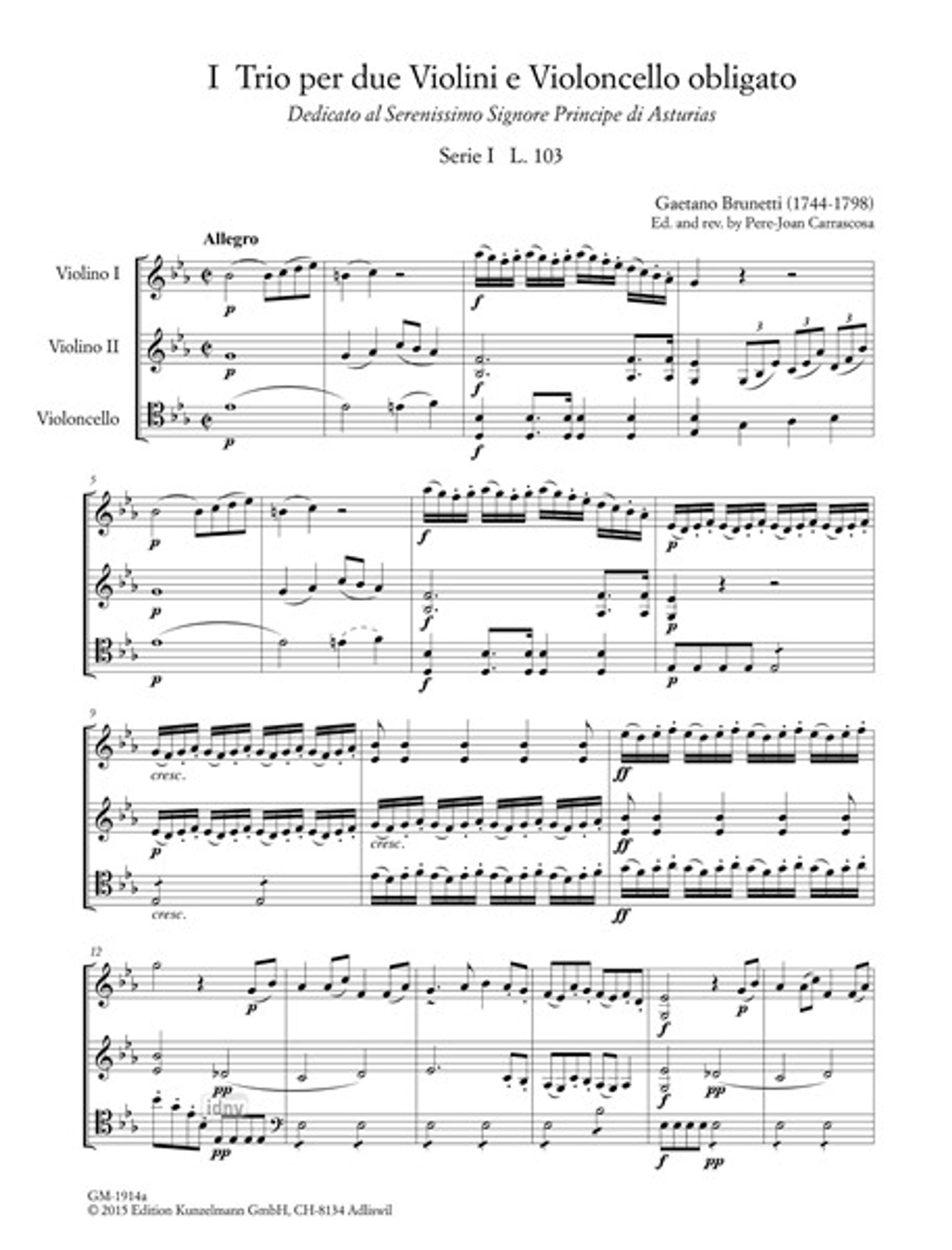 Gaetano Brunetti: 6 Trios für 2 Violinen und Violoncello, Trios 1 und 2 L. 103/104