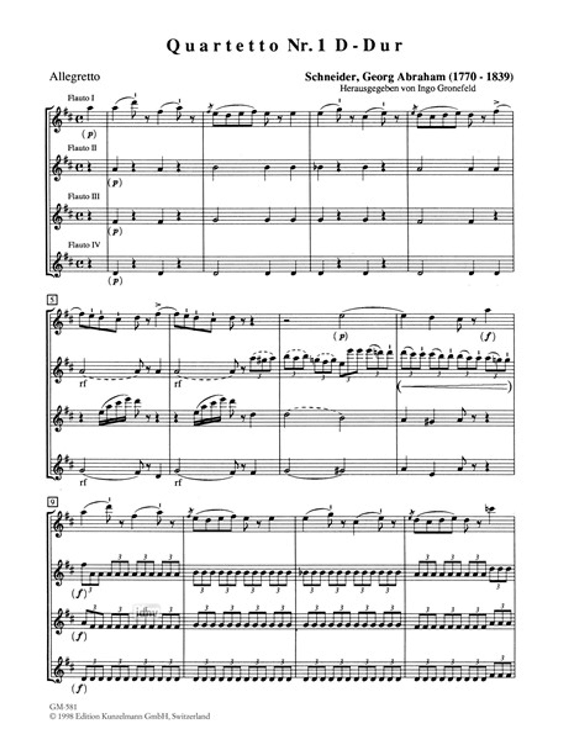 Georg Abraham Schneider: Quartett Nr. 1 für 4 Flöten D-Dur