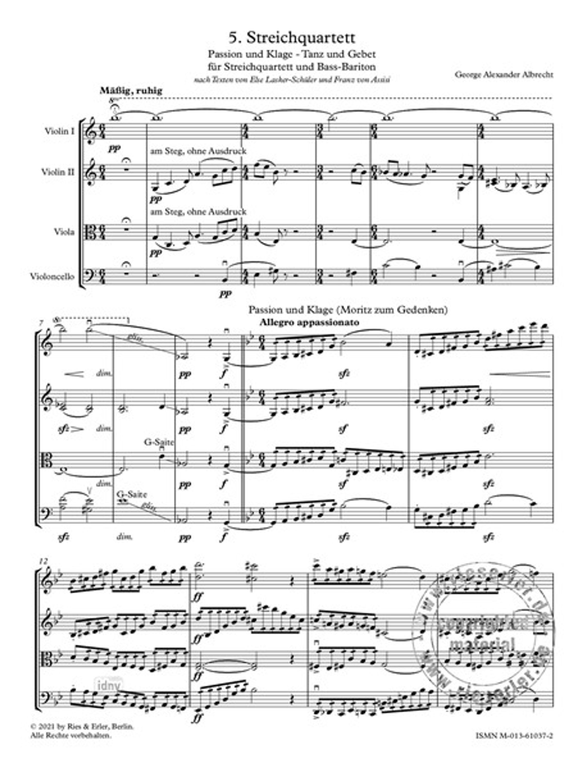 George Alexander Albrecht: 5. Streichquartett für Streichquartett und Bass-Bariton "Passion und Klage - Tanz und...