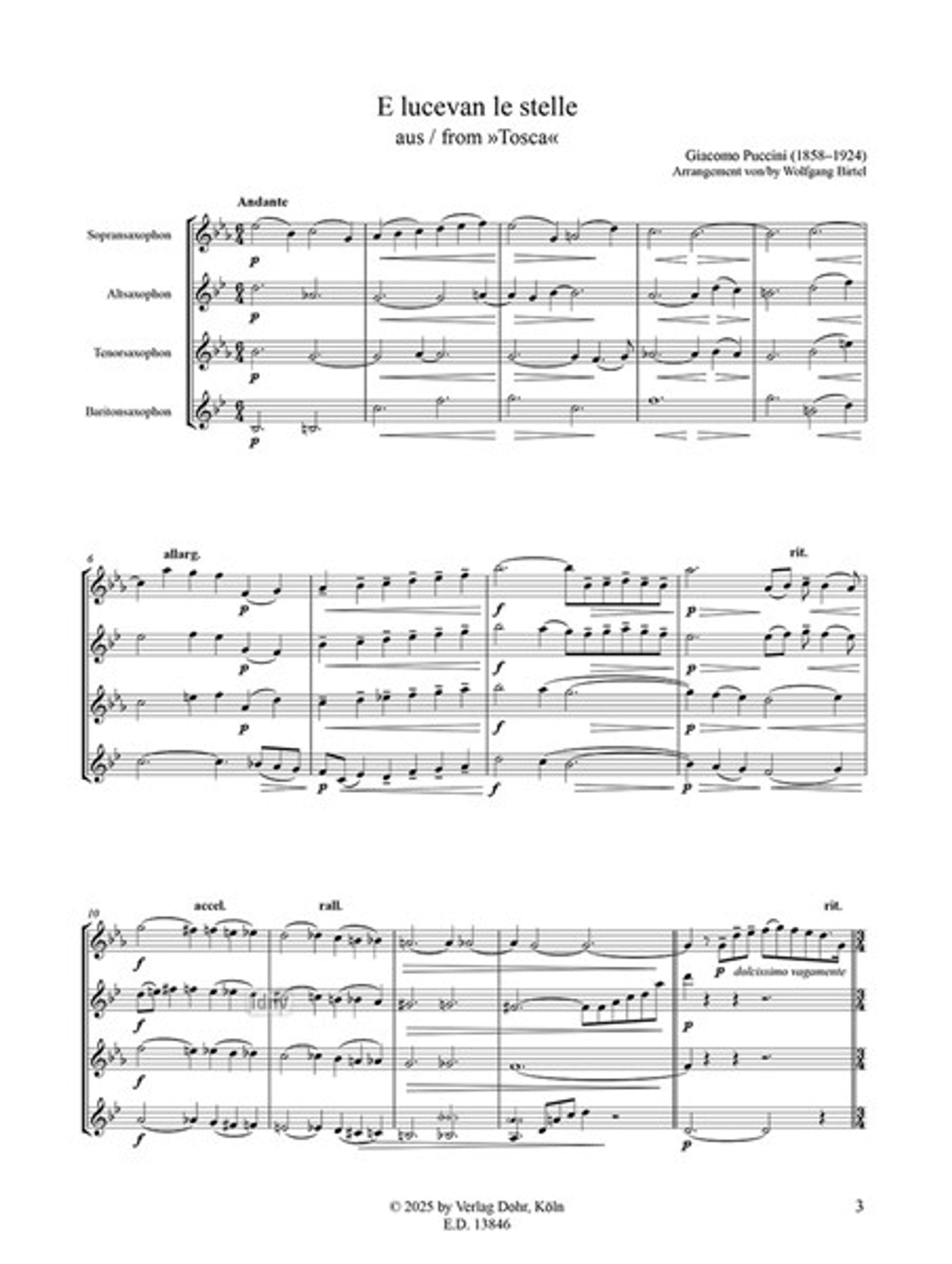 - für Saxophonquartett (SATBar); aus "Tosca"