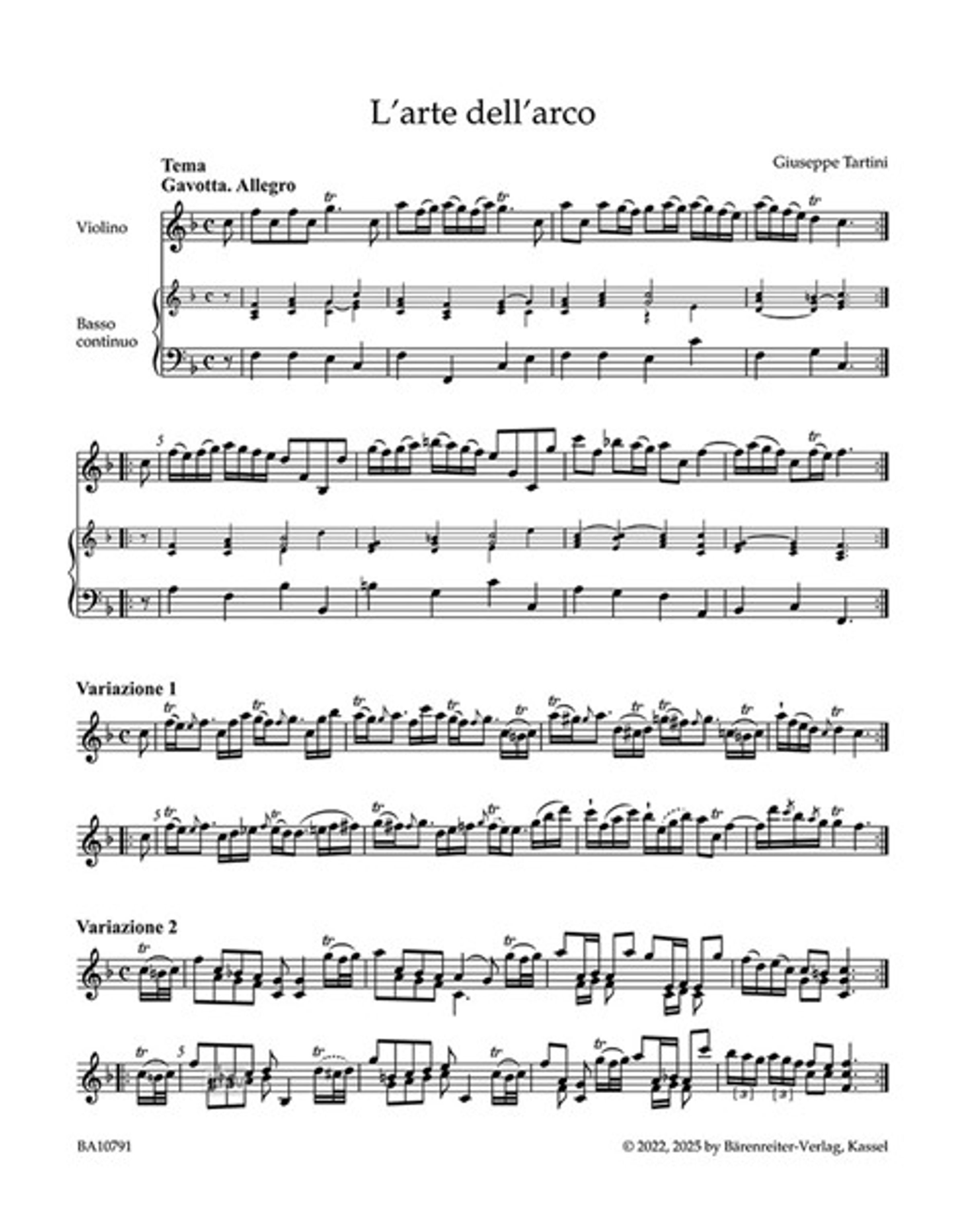 Giuseppe Tartini: L'arte dell'arco für Violine solo und Basso continuo ad libitum