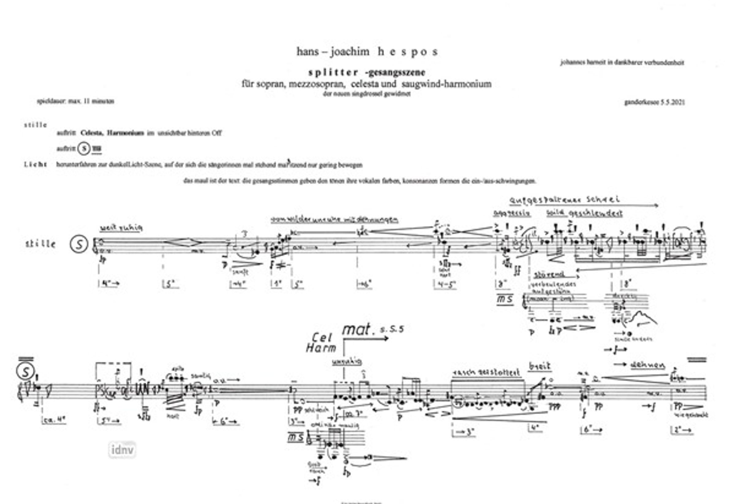Hans-Joachim Hespos: splitter für Sopran, Mezzosopran, Celesta und Harmonium (2021)
