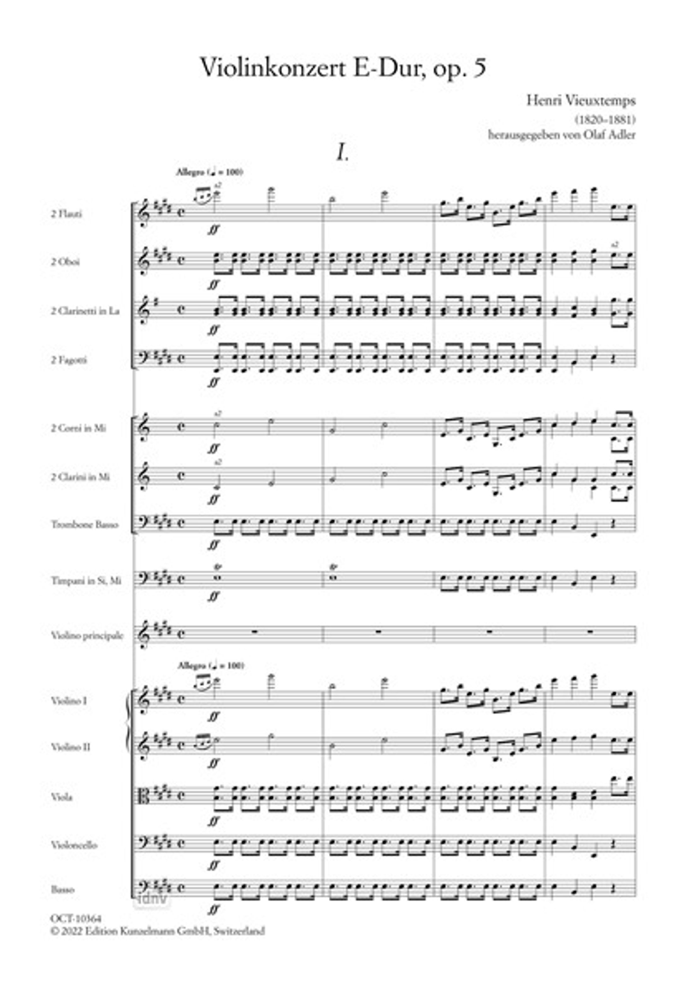 Henri Vieuxtemps: Violinkonzert E-Dur op. 5, Noten, Noten