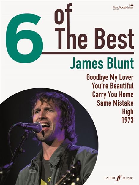 6 Of The Best: James Blunt comprises the sheet music to six of his greatest hits, arranged for piano and voice with guitar chords. 6 Of The Best simply does what it says - 6 of the best hits from leading artists available in a new and competitively priced format.