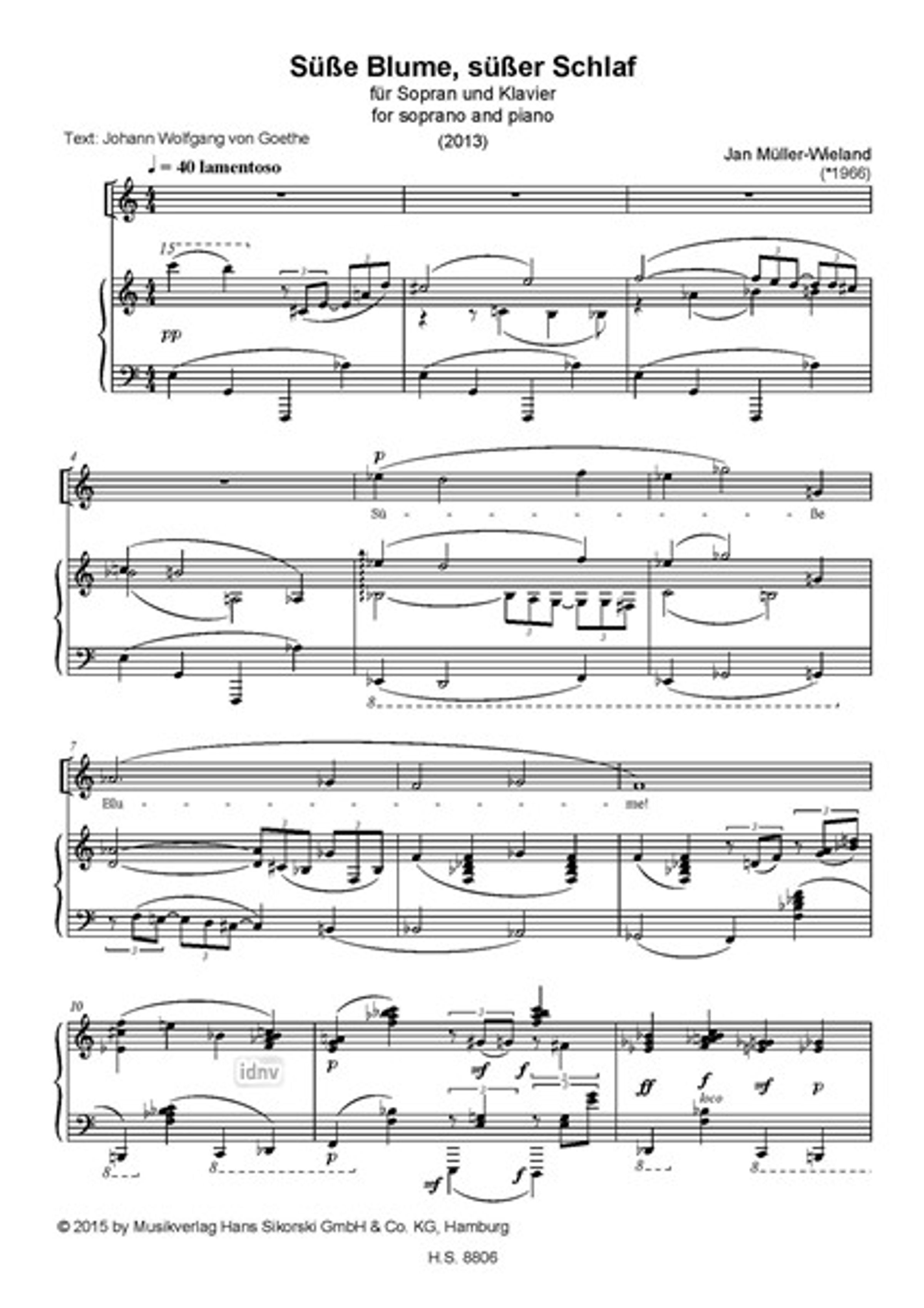 Jan Müller-Wieland: Süße Blume, süßer Schlaf für Sopran und Klavier