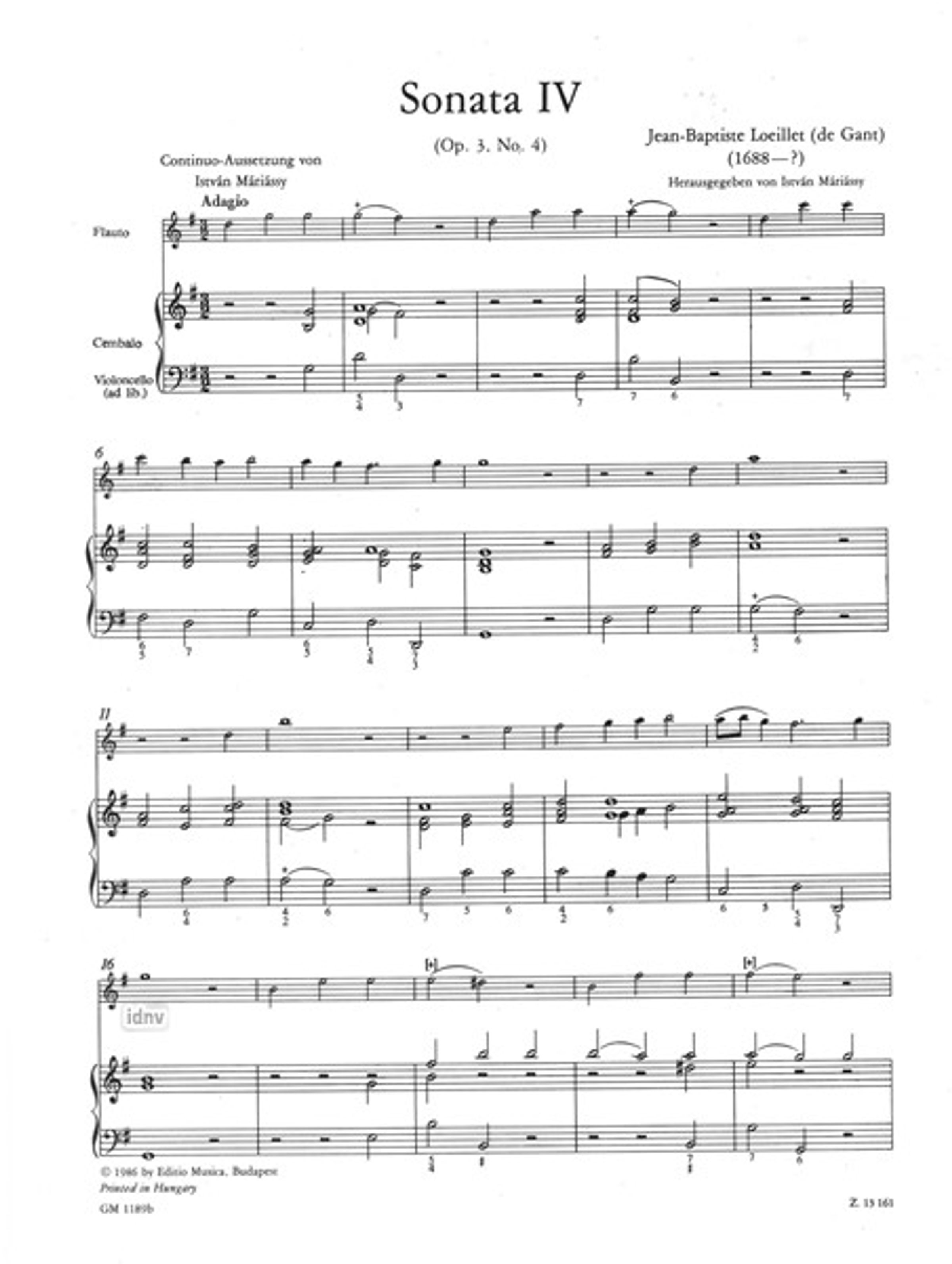 Jean Baptiste Loeillet de Gant: Sonaten 4-6 op. 3