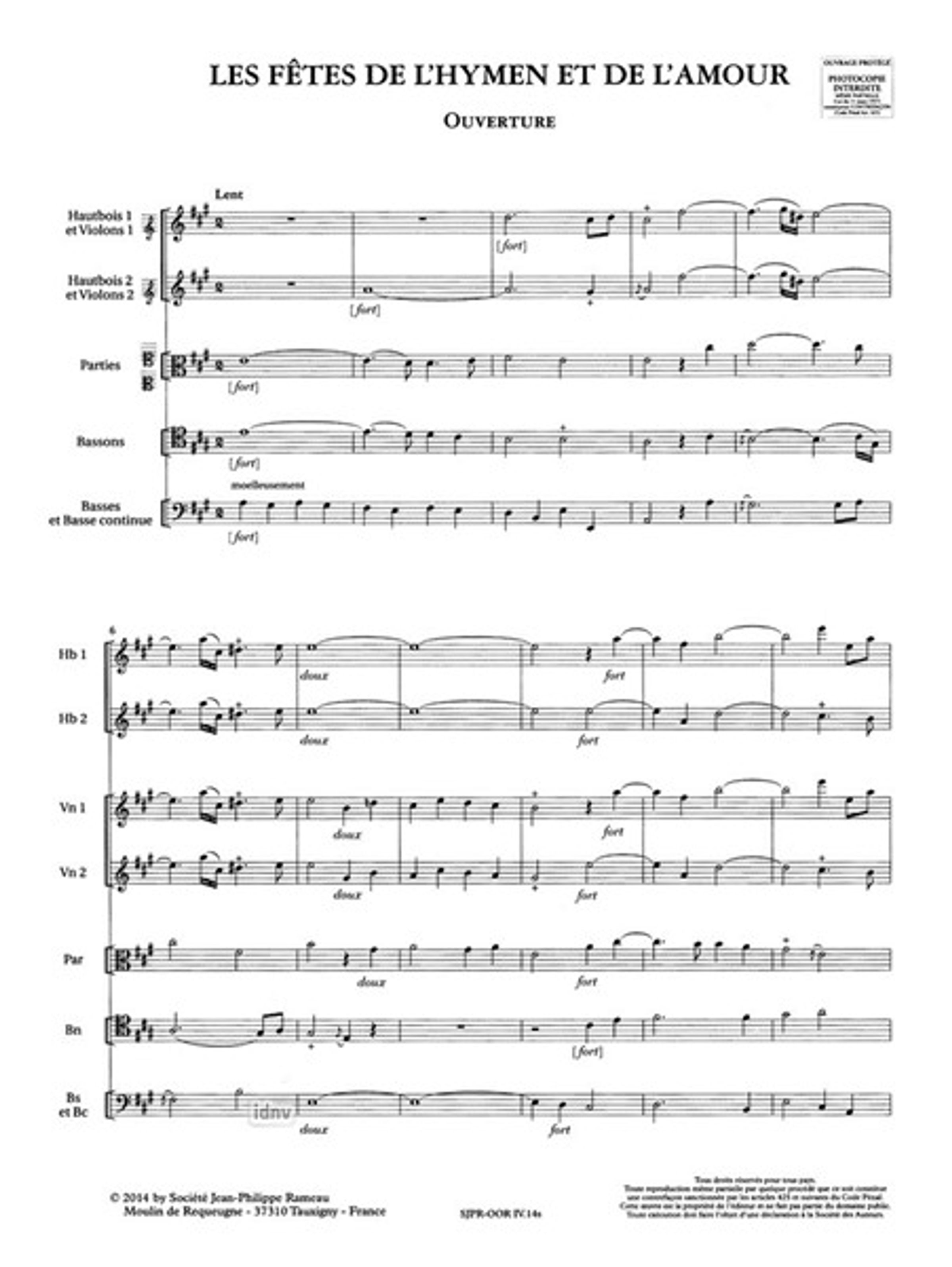 Jean Philippe Rameau: Les Fêtes de l'Hymen et de l'Amour RCT 38, Noten, Noten