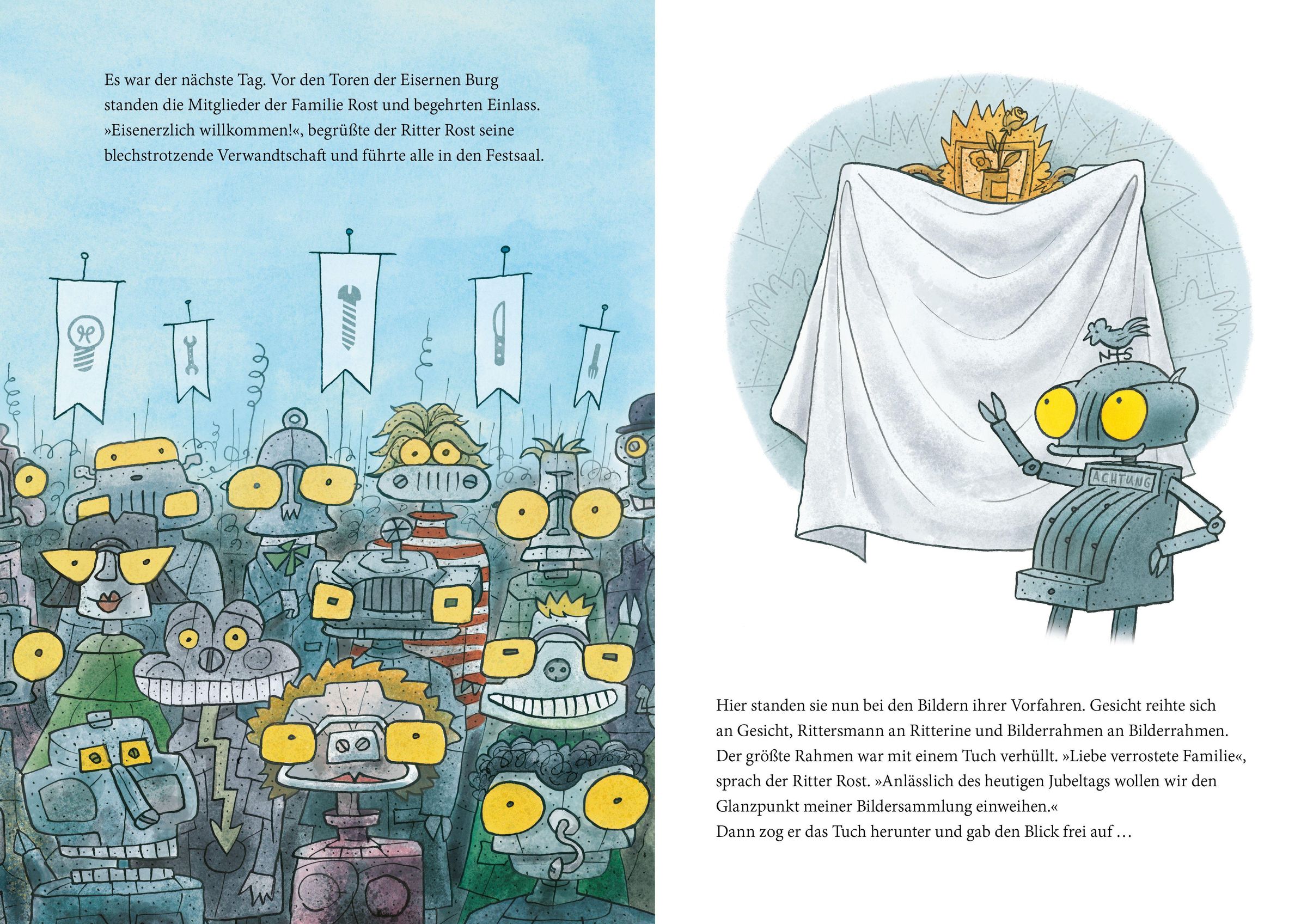 Beim Familienfest will Ritter Rost ein Portrait von sich in der Ahnengalerie enthüllen. Aber Chaos ist vorprogrammiert: Zuerst erklärt er, dass Bö und Koks nicht offiziell zur Familie Rost gehören, und dann gerät er auch noch mit der Künstlerin aneinander! Als er selbst zum Pinsel greift, kann von Kunst keine Rede mehr sein. Was soll er nun den Verwandten präsentieren? Zum Glück sind Bö und Koks nicht nachtragend und helfen ihm. Schließlich sind sie eine, wenn auch zusammengewürfelte, Familie! Und Familien halten zusammen ...