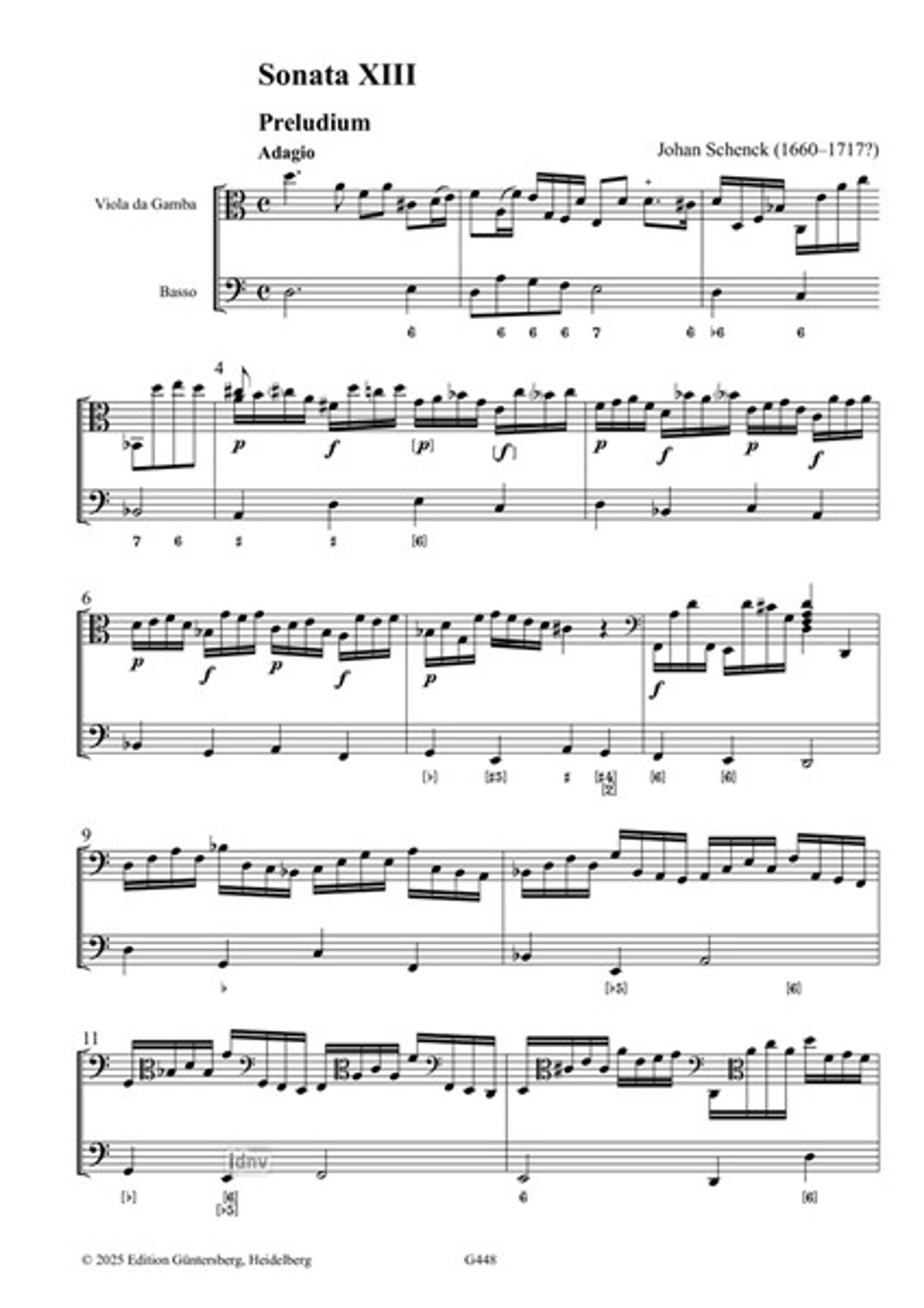 Johan Schenck: Tyd en Konst-Oeffeningen für Viola da Gamba und Basso continuo op. 2