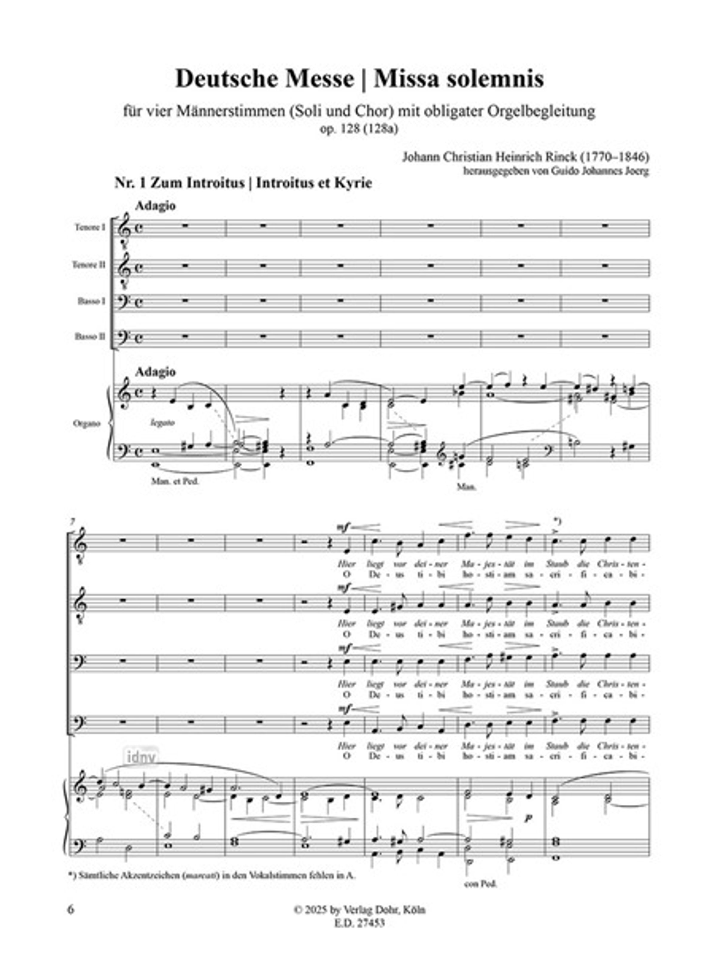 Deutsche Messe (Missa solemnis) für vier Männerstimmen (Soli und Chor) und Orgel op. 128