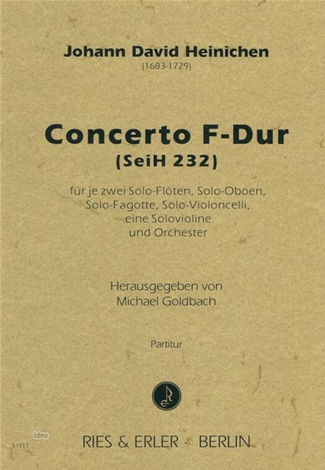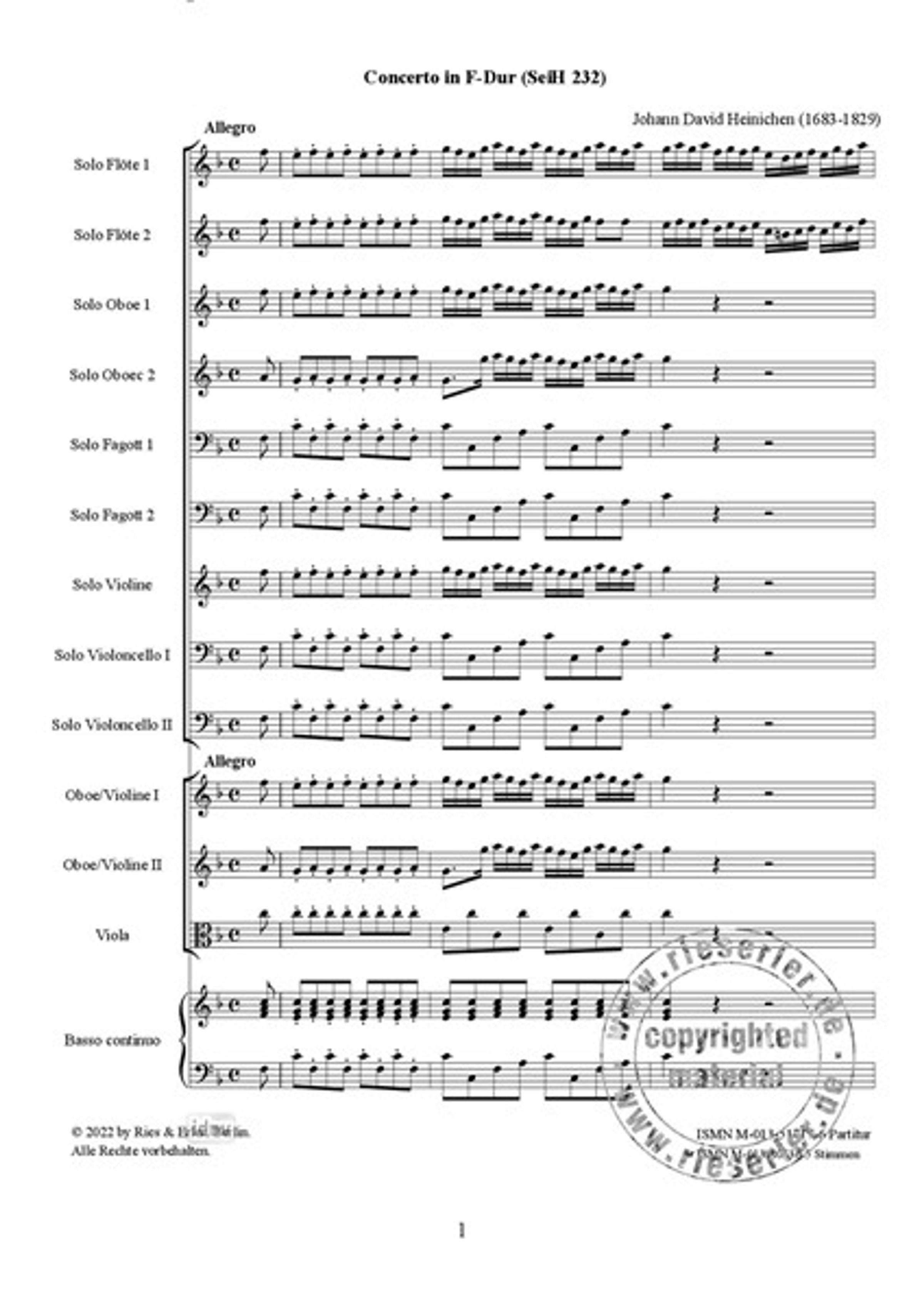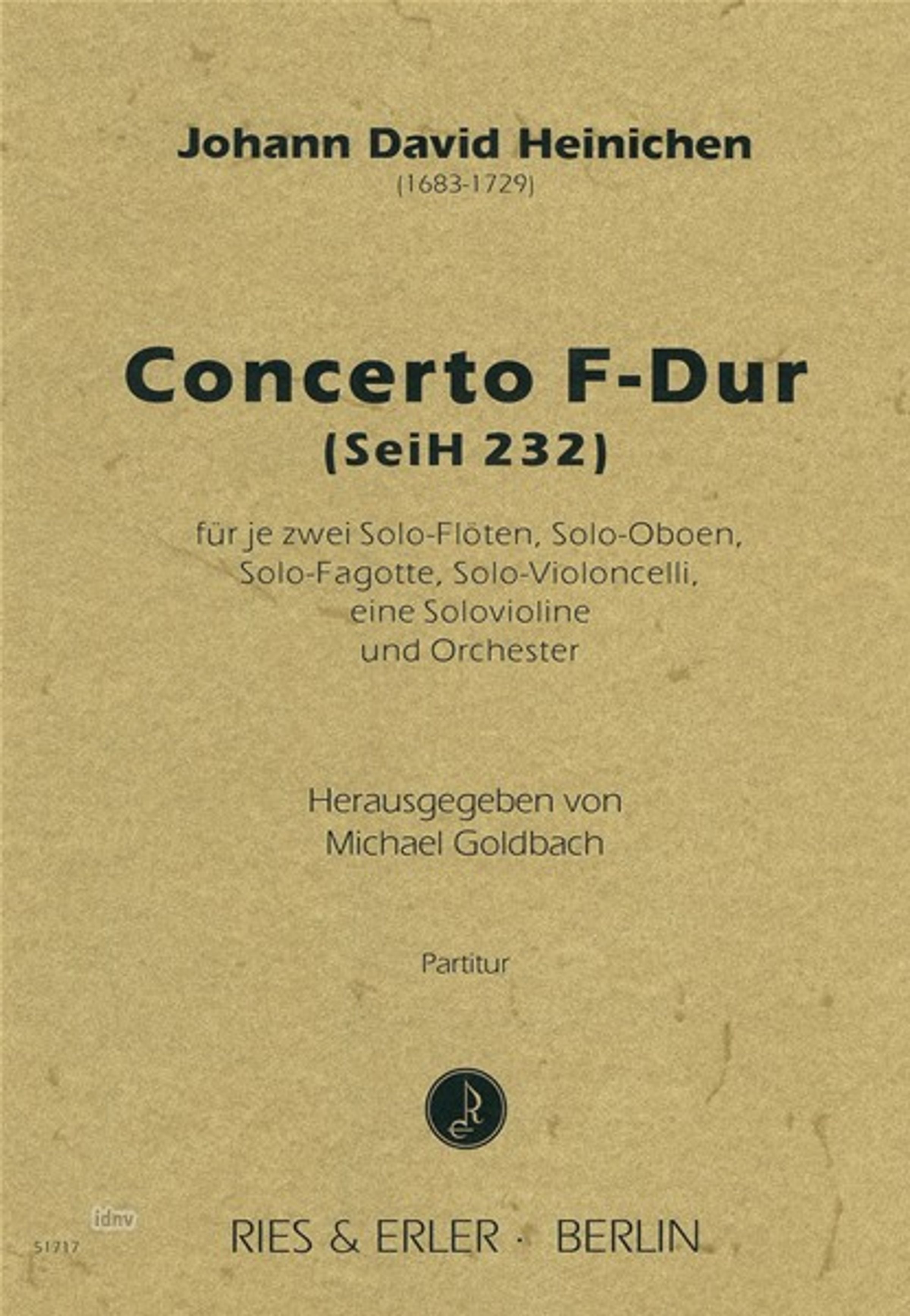 Johann David Heinichen: Concerto für je zwei Solo-Flöten, Solo-Oboen, Solo-Fagotte, Solo-Violoncelli, eine...