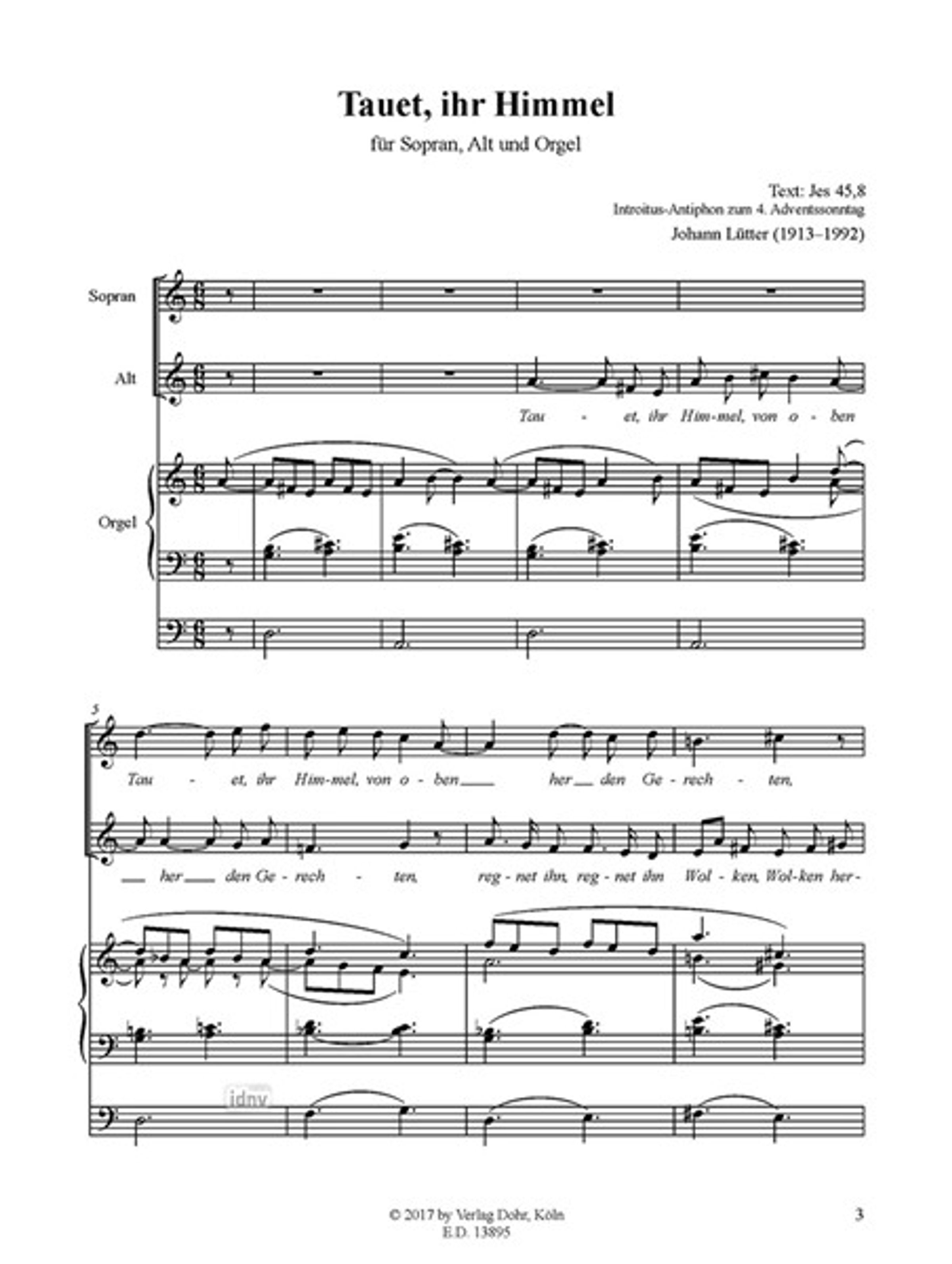 Tauet, ihr Himmel für Sopran, Alt und Orgel