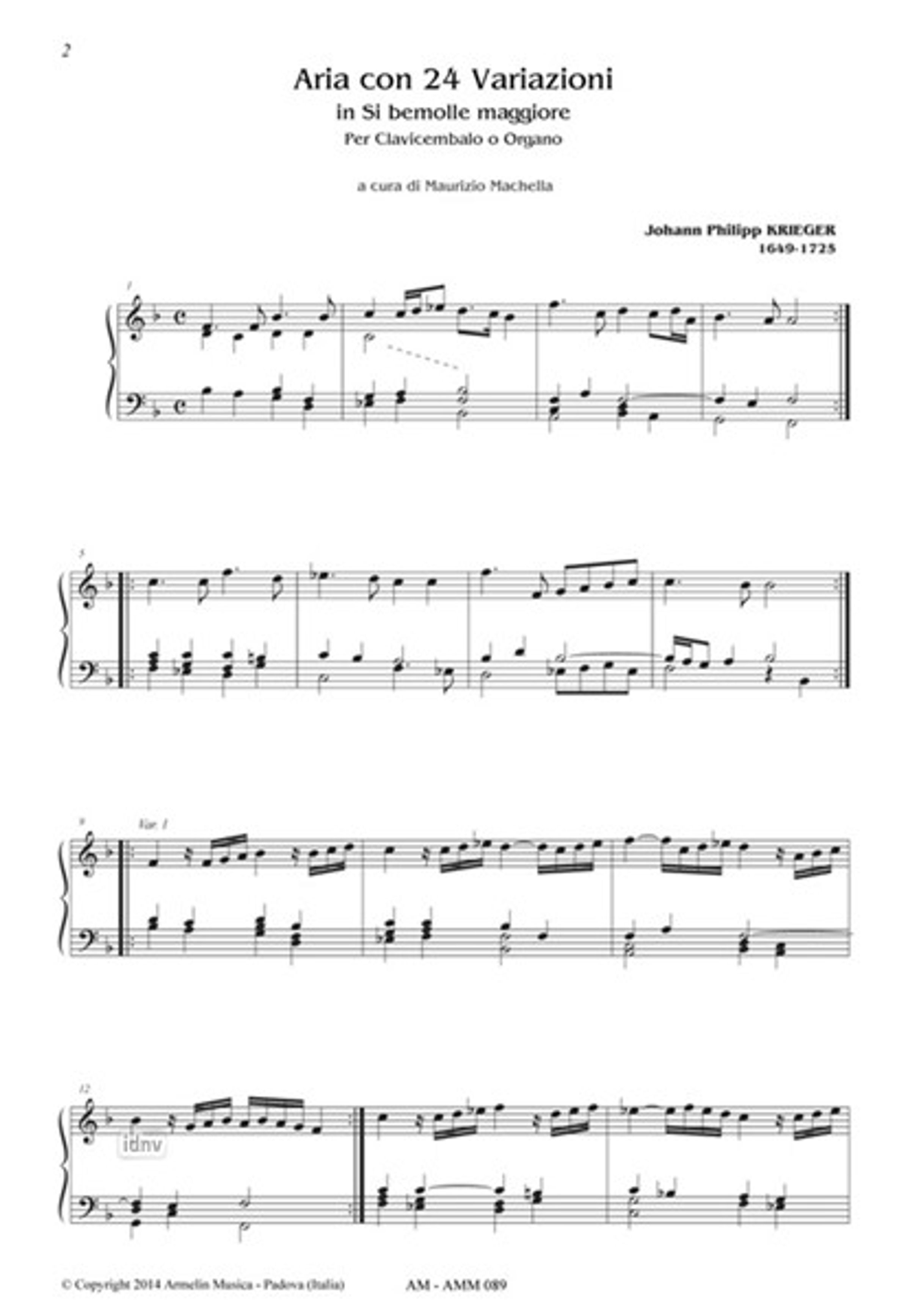 Johann Philipp Krieger: Aria con 24 Variazioni in Si bemolle maggiore. Per Clavicembalo o Organo Harpsicord or...