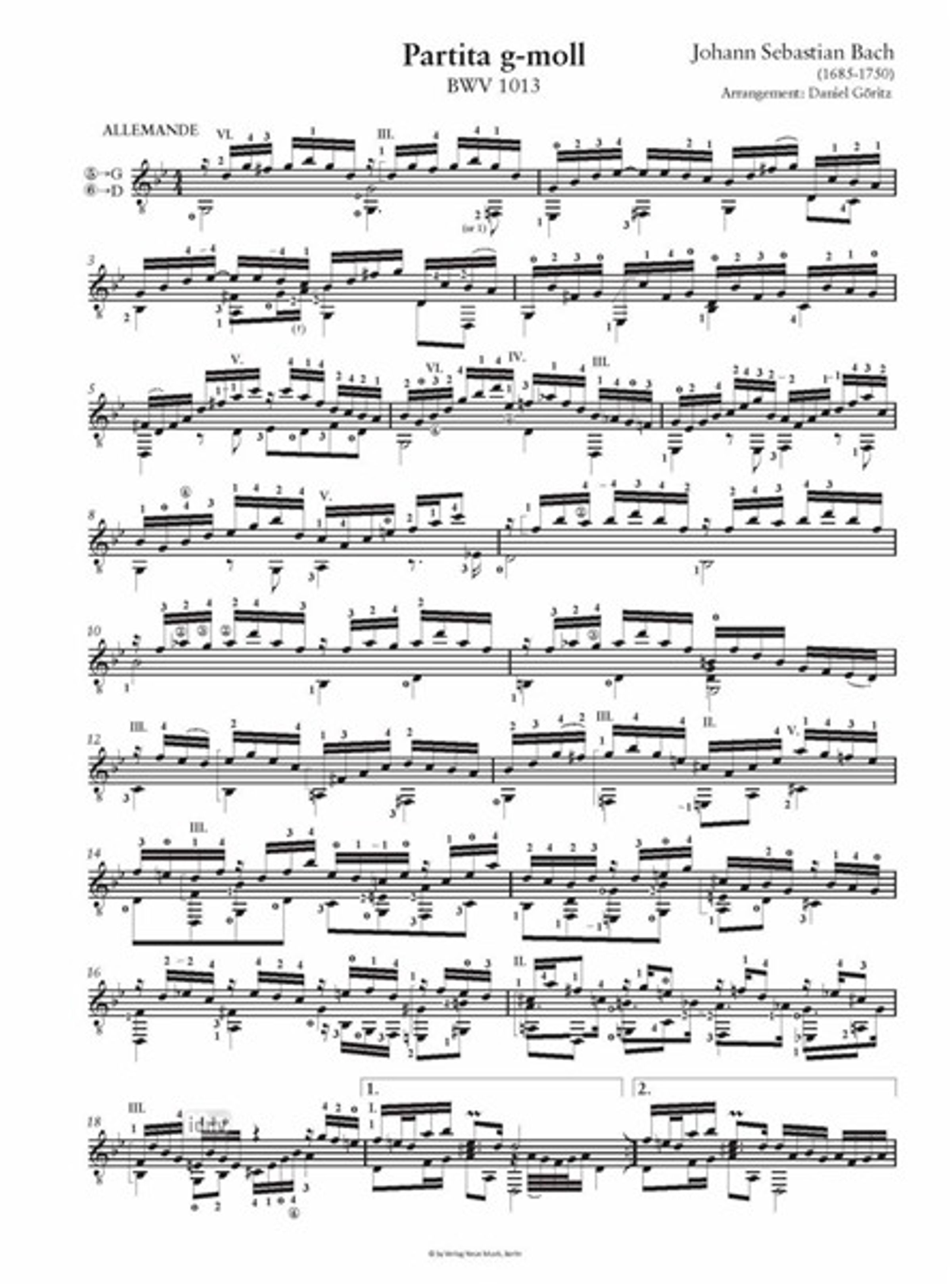 Johann Sebastian Bach: Partita BWV 1013 bearbeitet für Gitarre solo, in g-moll