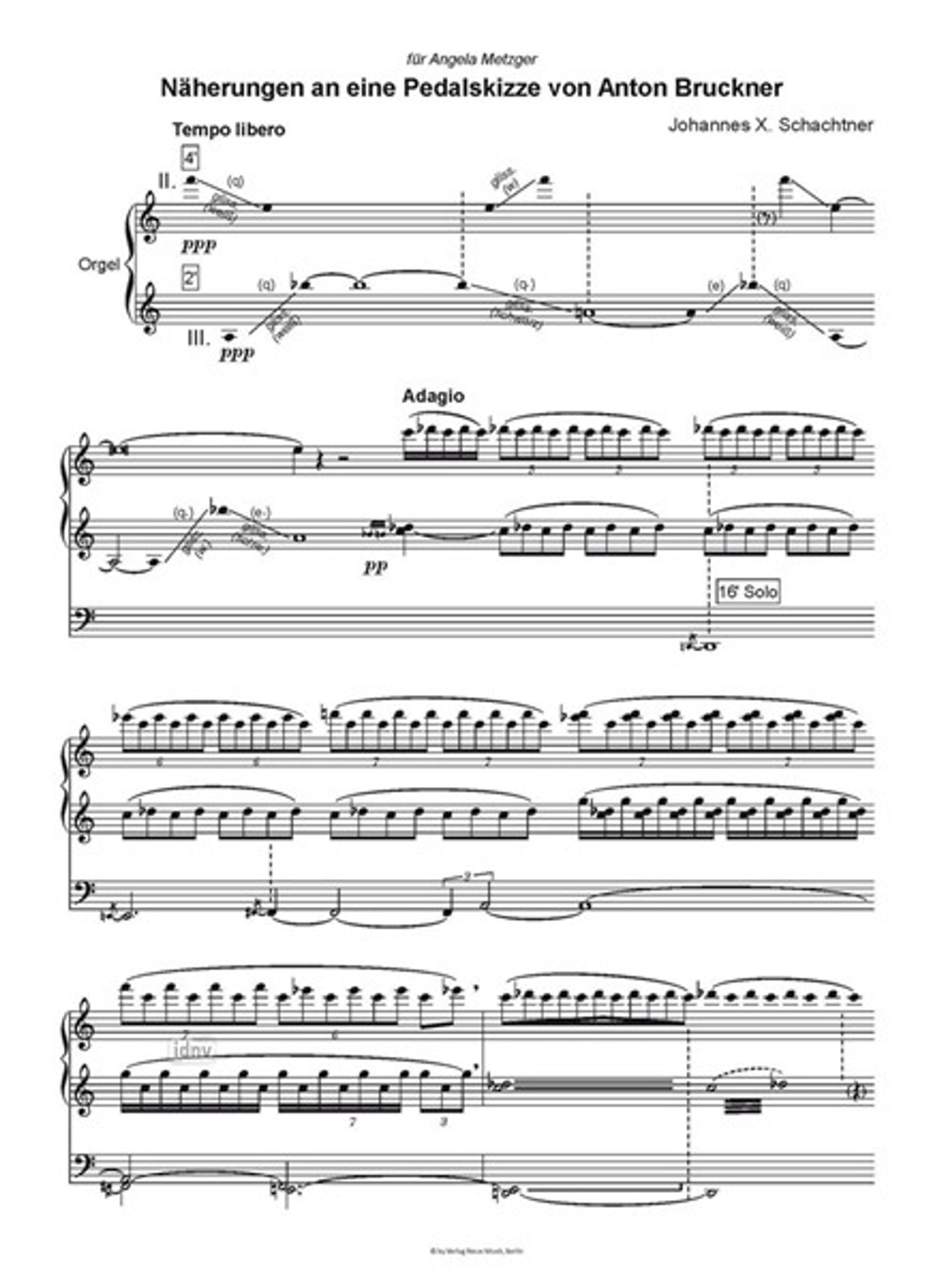 Johannes X. Schachtner: Näherungen an eine Pedalskizze von Anton Bruckner für Orgel (2024)