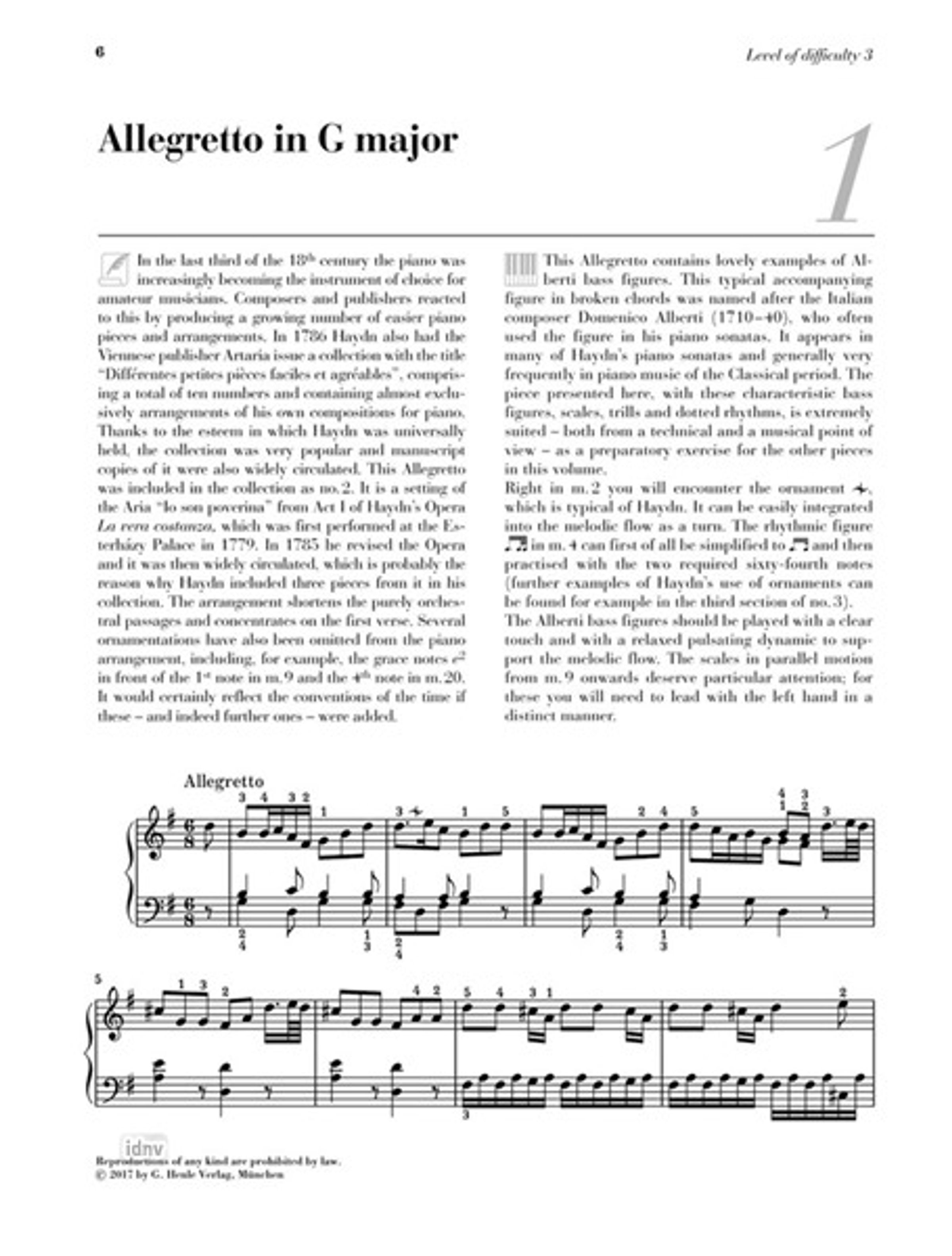 Haydn's piano sonatas are indispensable in the moderately difficult piano repertoire - not just because of their sheer playability, but also because of their humour and inventiveness. Besides several easy individual movements, our volume also includes two complete sonatas so that the performer can experience the broader dramatic trajectory of a multi-movement work. We further include some charming arrangements for piano that Haydn made of his own works - such as the slow movement of his String Quartet op. 76 no. 3, whose theme is better known today as the German national anthem.Anmerkungen: