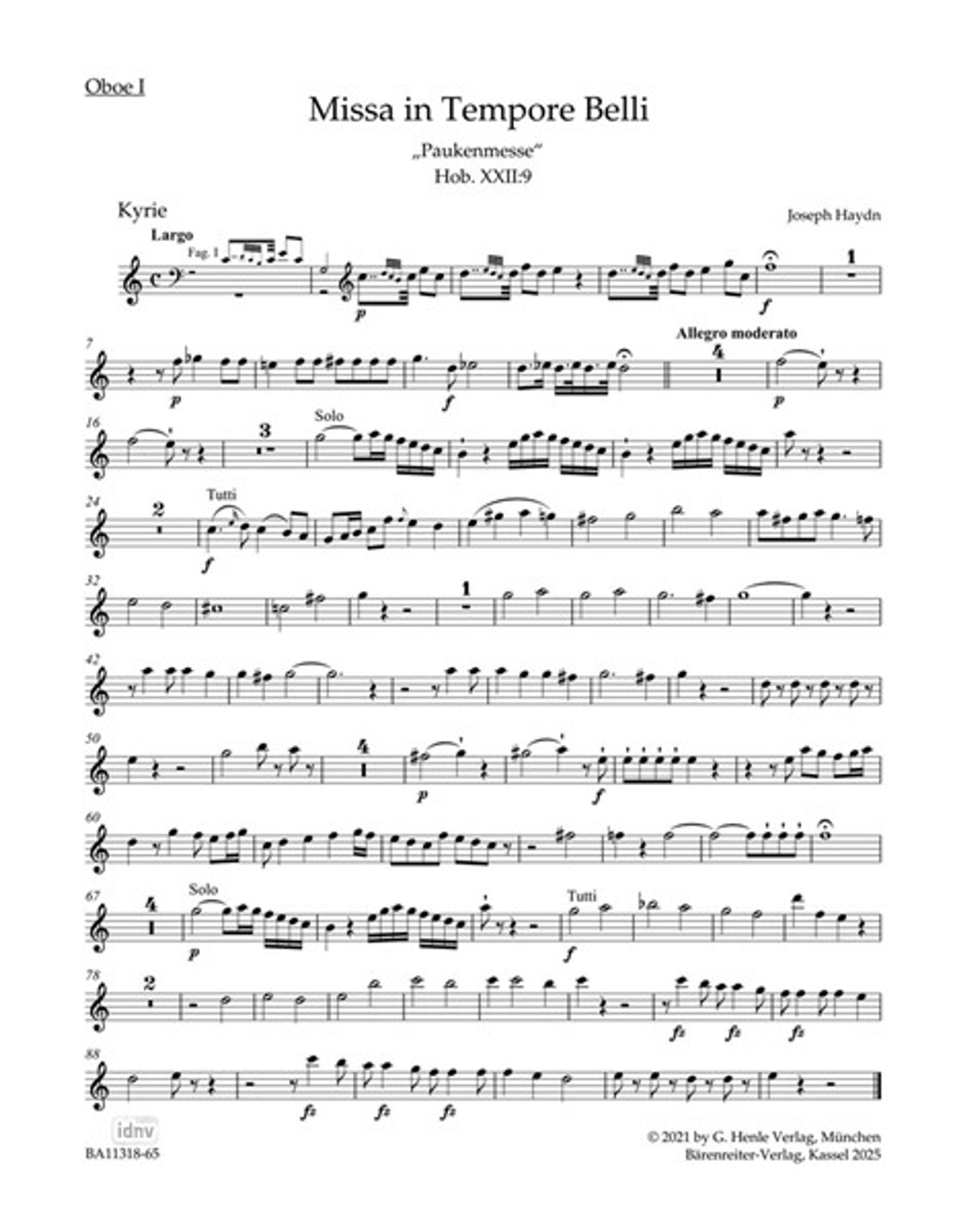 Weitere Ausgaben von Missa in Tempore Belli Hob. XXII:9 "Paukenmesse" |