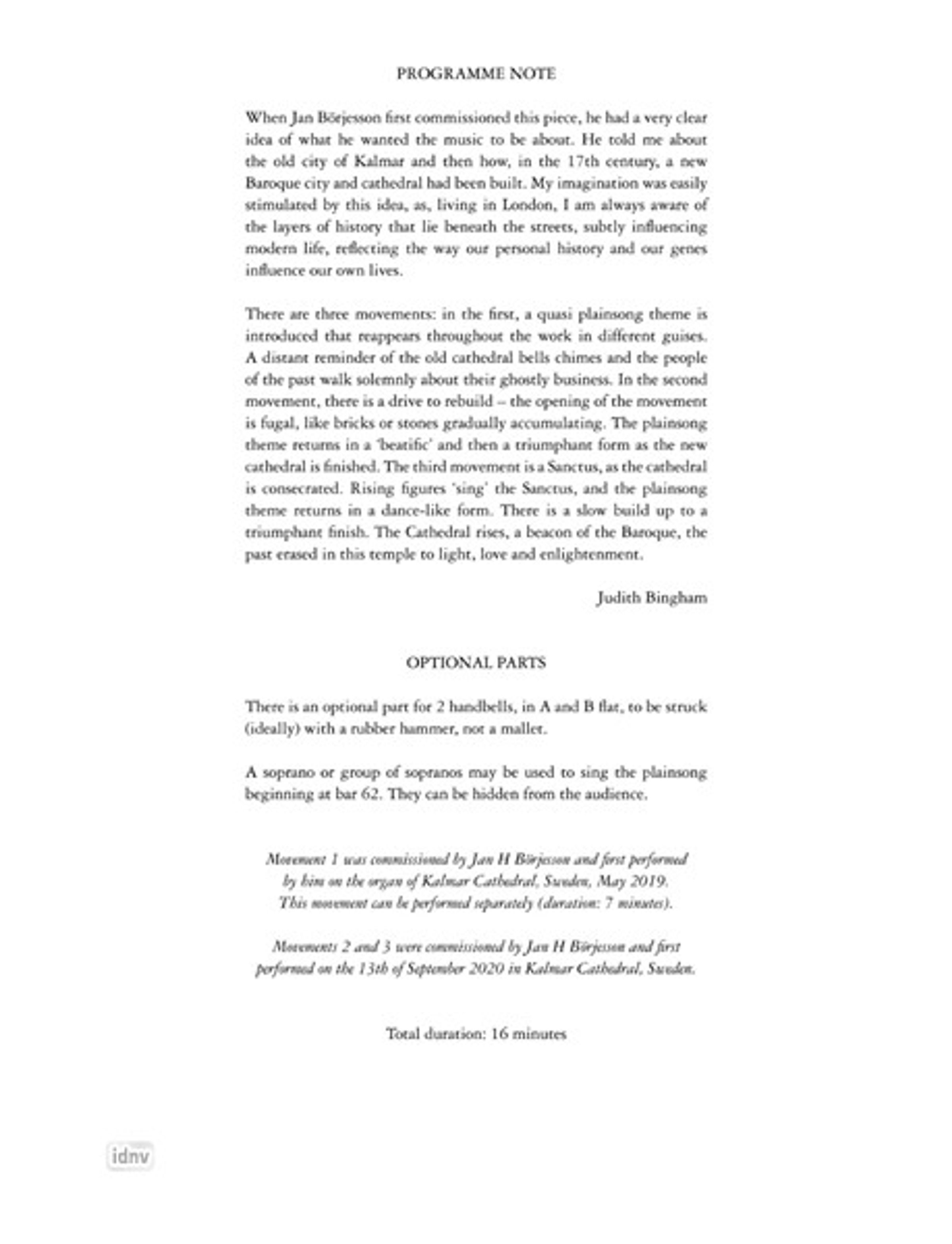Judith Bingham: Kalmar Rising for Organ solo for Organ (2019/2020)