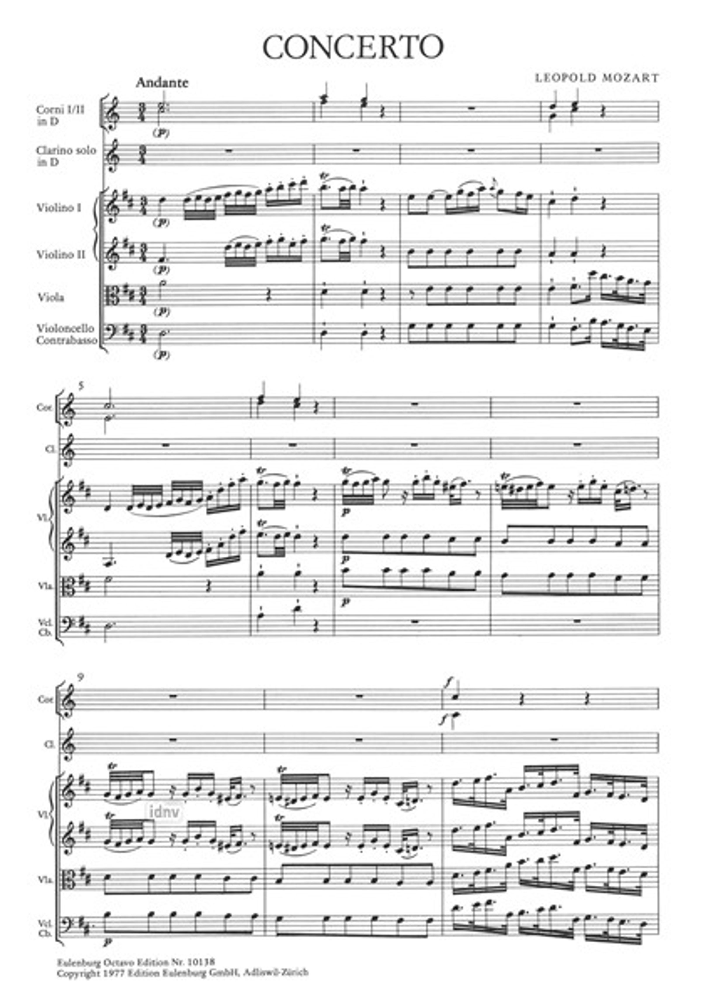 Leopold Mozart: Konzert für Trompete D-Dur, Noten, Noten
