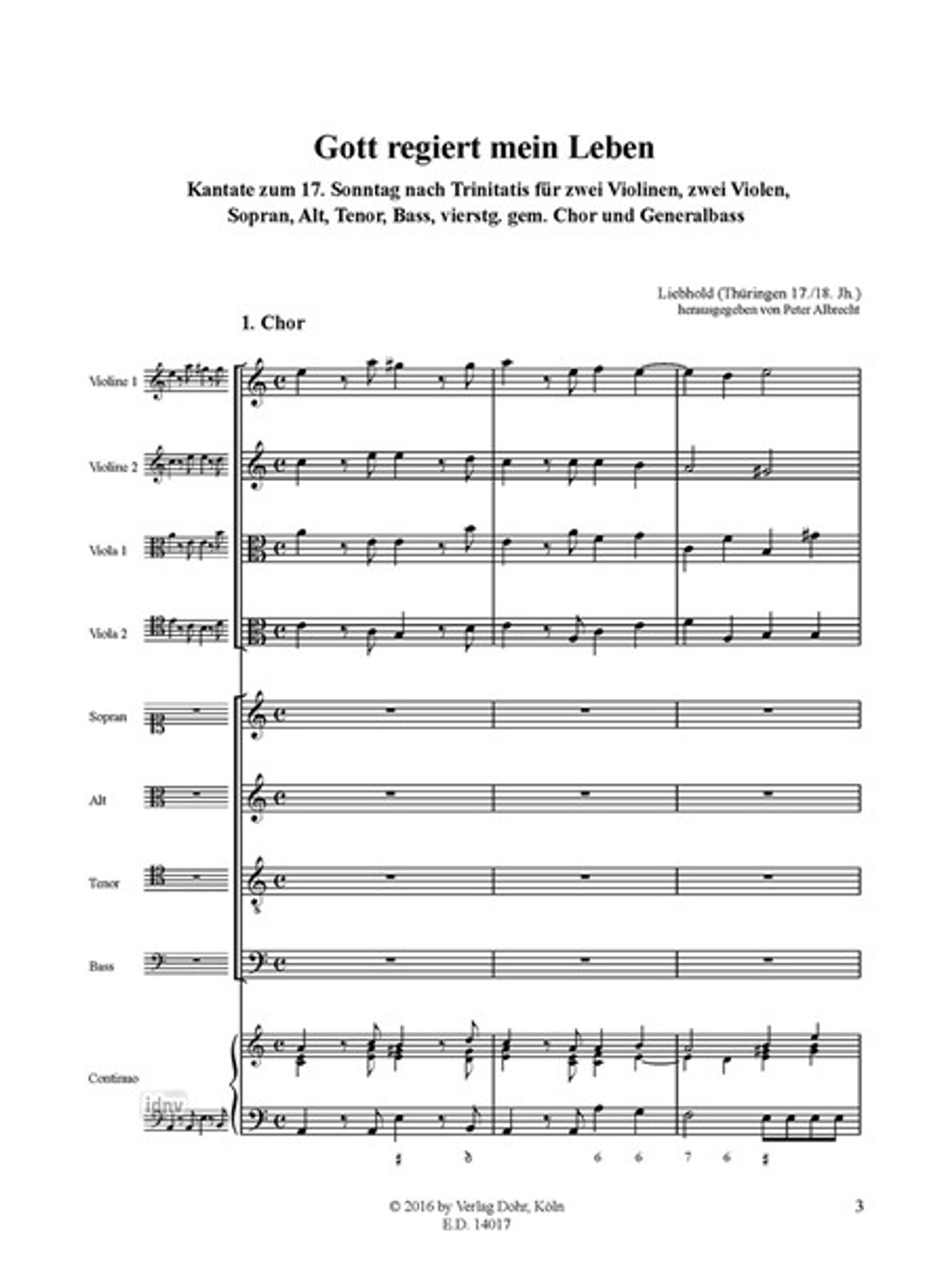 Liebhold: Gott regiert mein Leben für zwei Violinen, zwei Violen, Sopran, Alt, Tenor, Bass, 4stg. gem. Chor und...