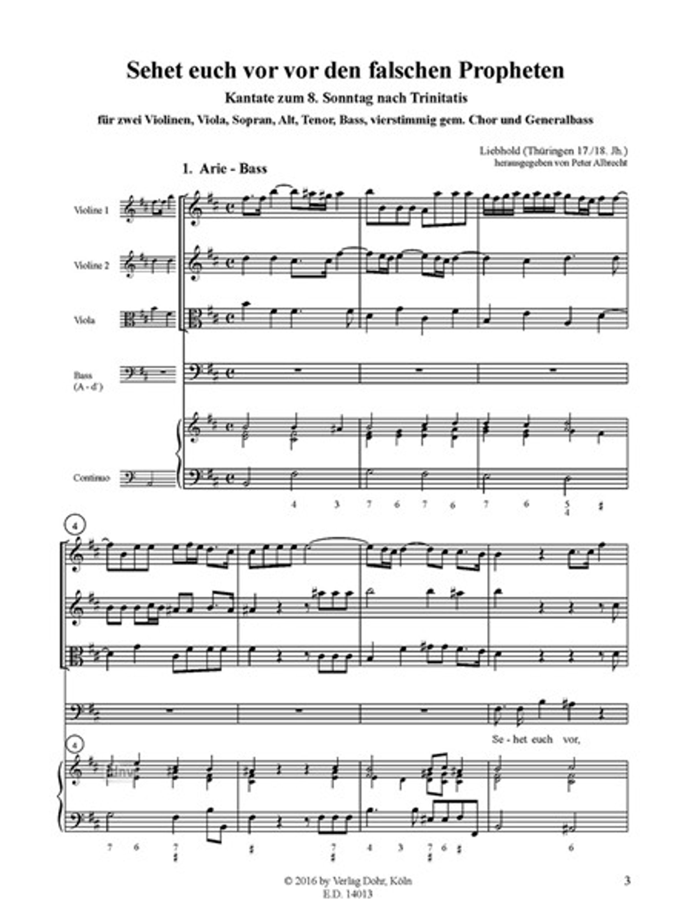 Liebhold: Sehet euch vor vor den falschen Propheten für zwei Violinen, Viola, Sopran, Alt, Tenor, Bass, 4stg....