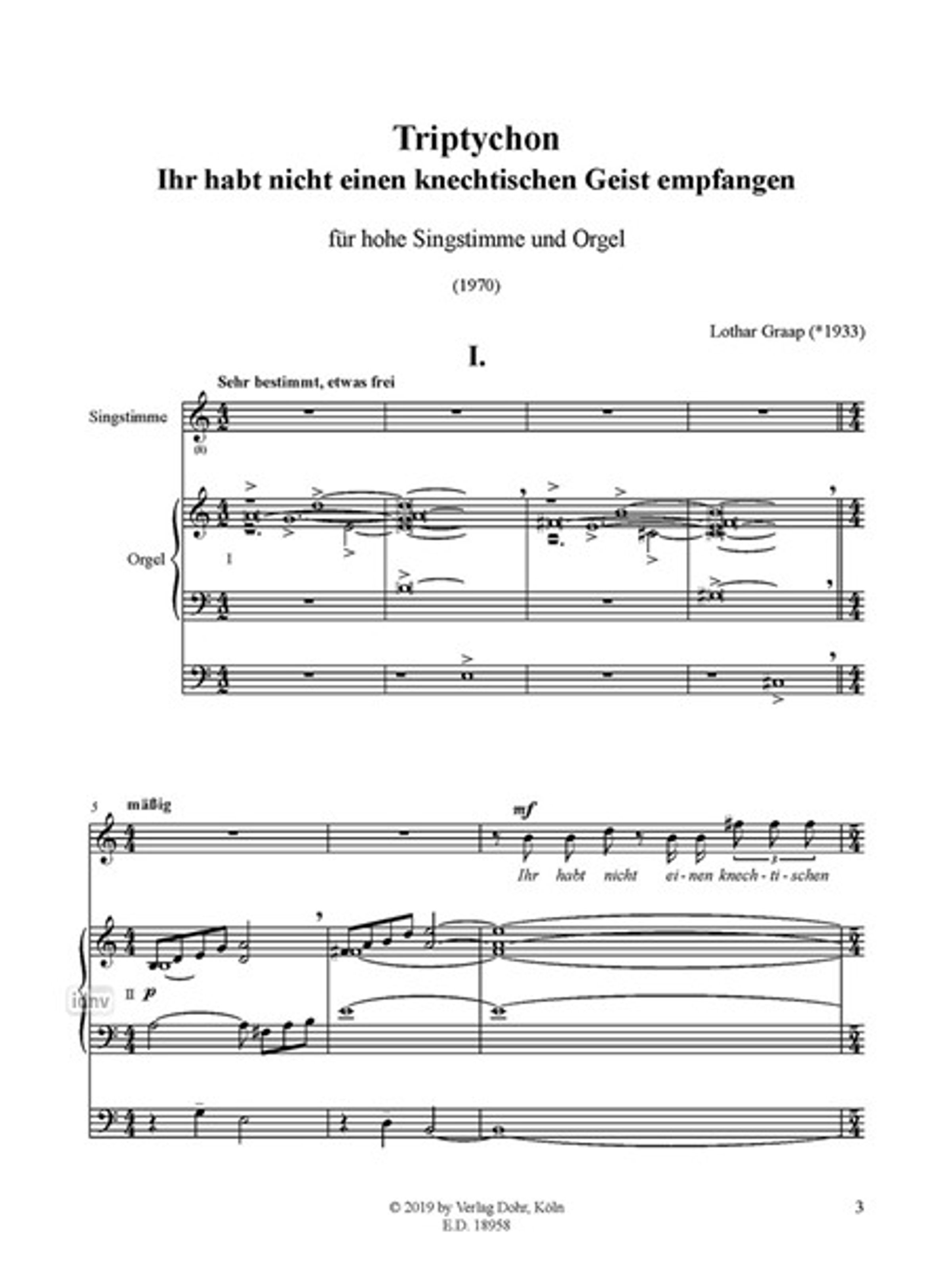 Triptychon für hohe Singstimme und Orgel "Ihr habt nicht einen knechtischen Geist empfangen" (1970)