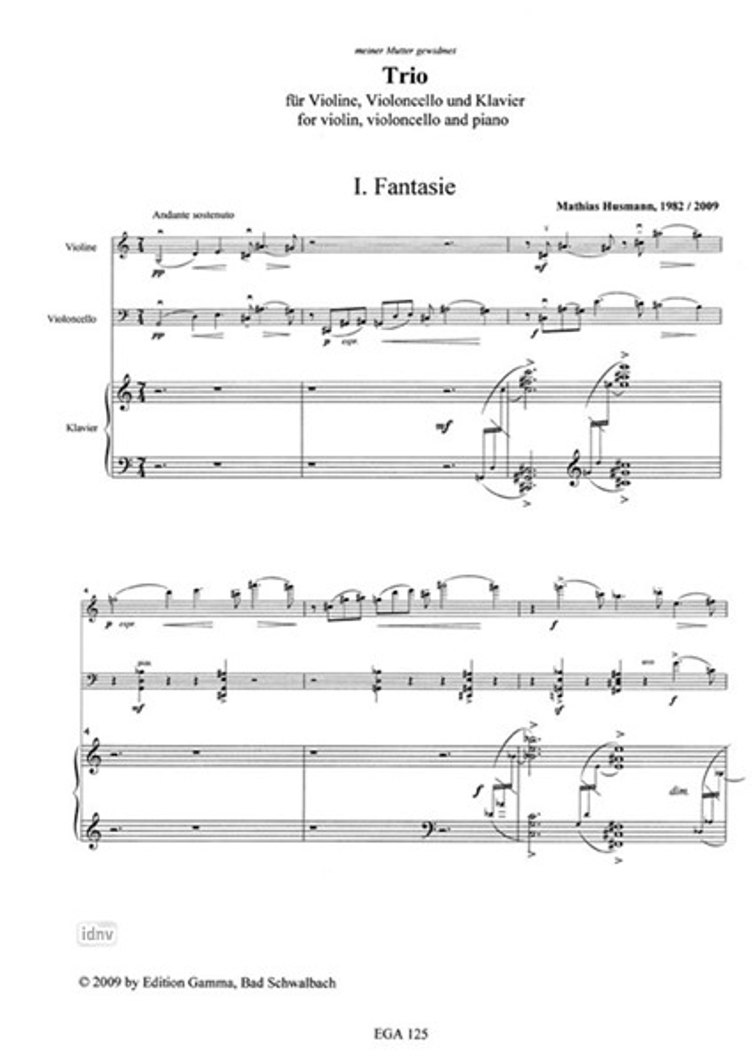 Mathias Husmann: Trio für Violine, Violoncello und Klavier, Noten, Noten