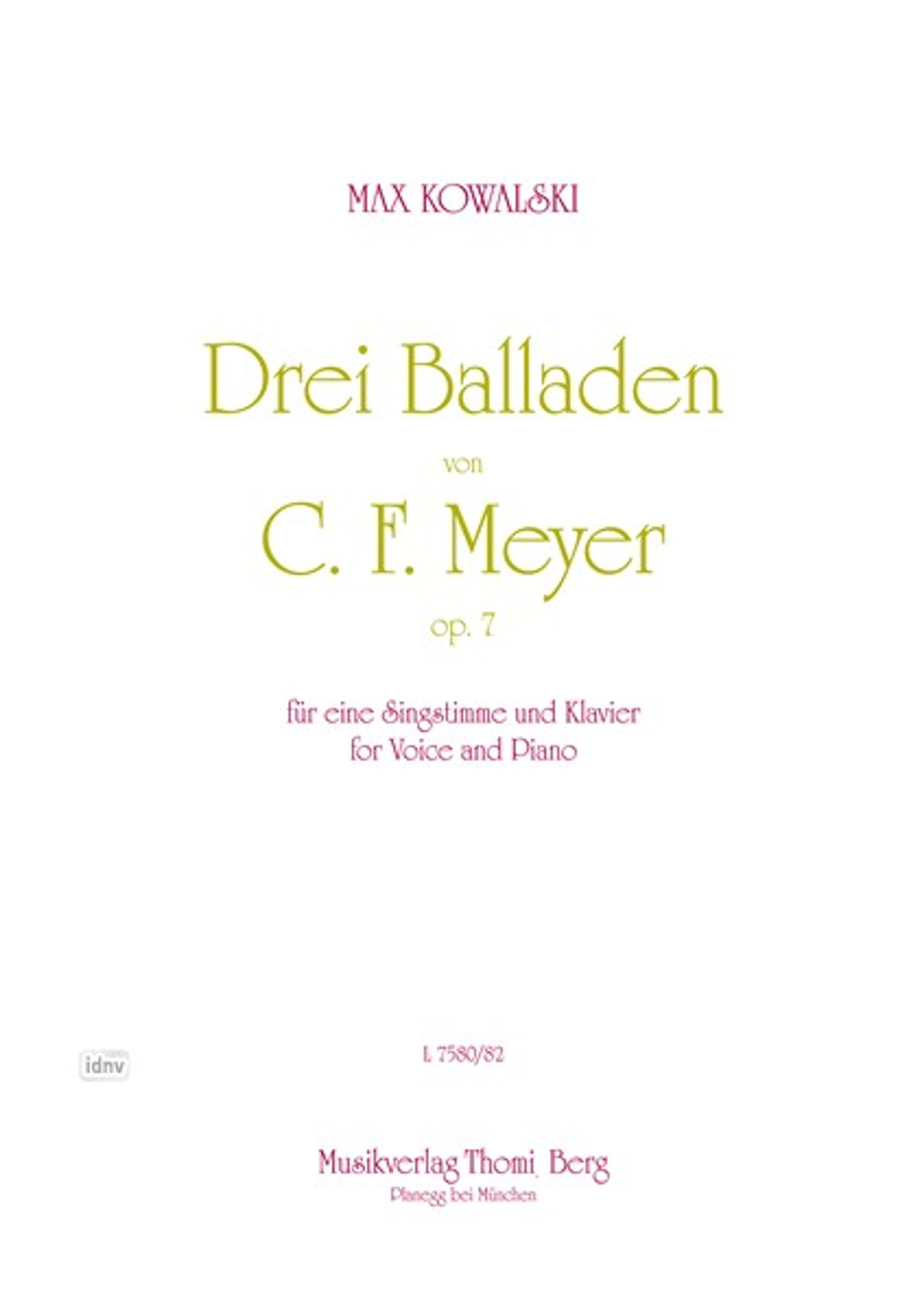 Max Kowalski: Drei Balladen von Conrad Ferdinand Meyer Gesang und Klavier op. 7