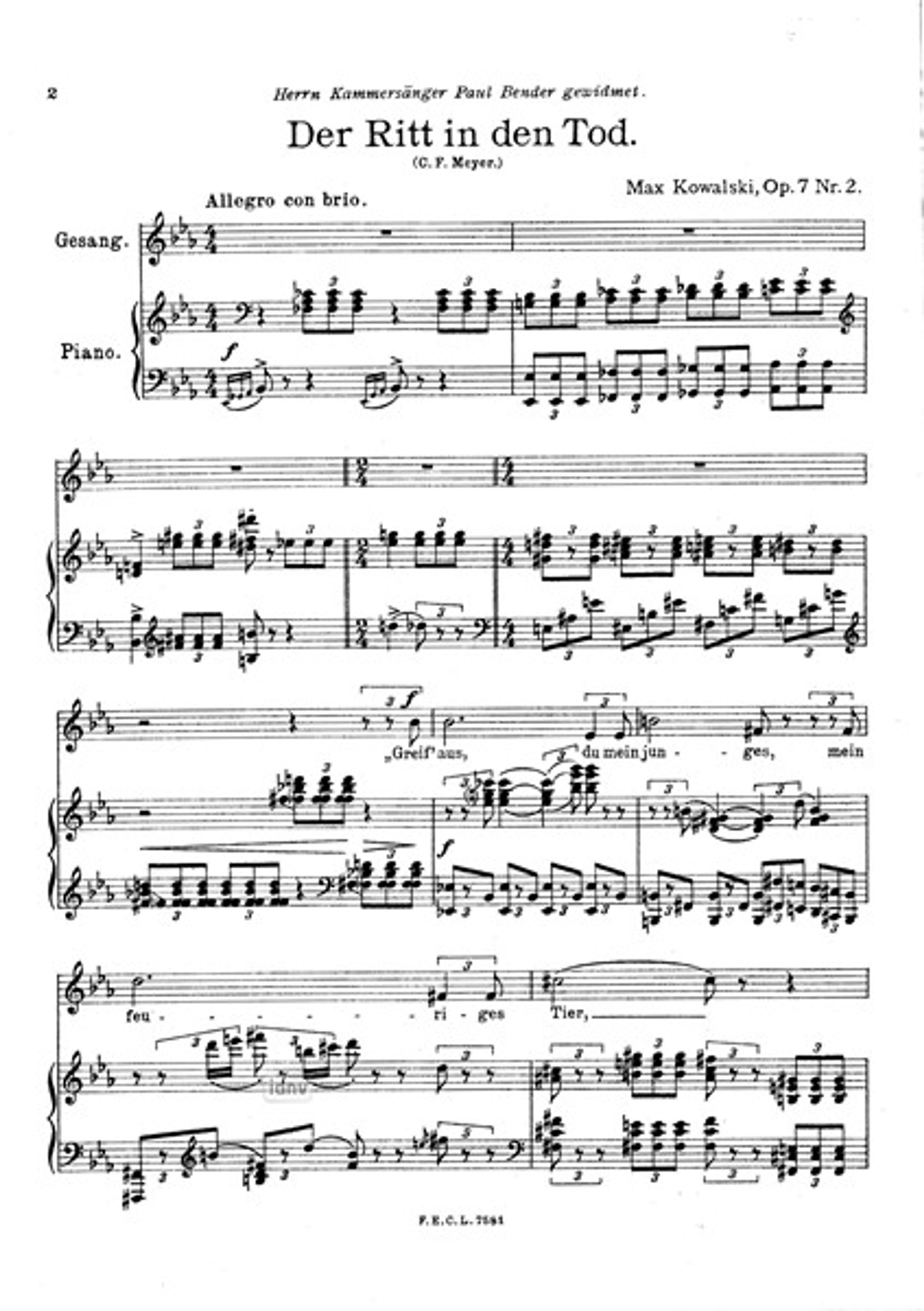 2. 2 Der Ritt in den Tod: Greif aus, du mein junges, mein feuriges Tier Gesang und Klavier op. 7