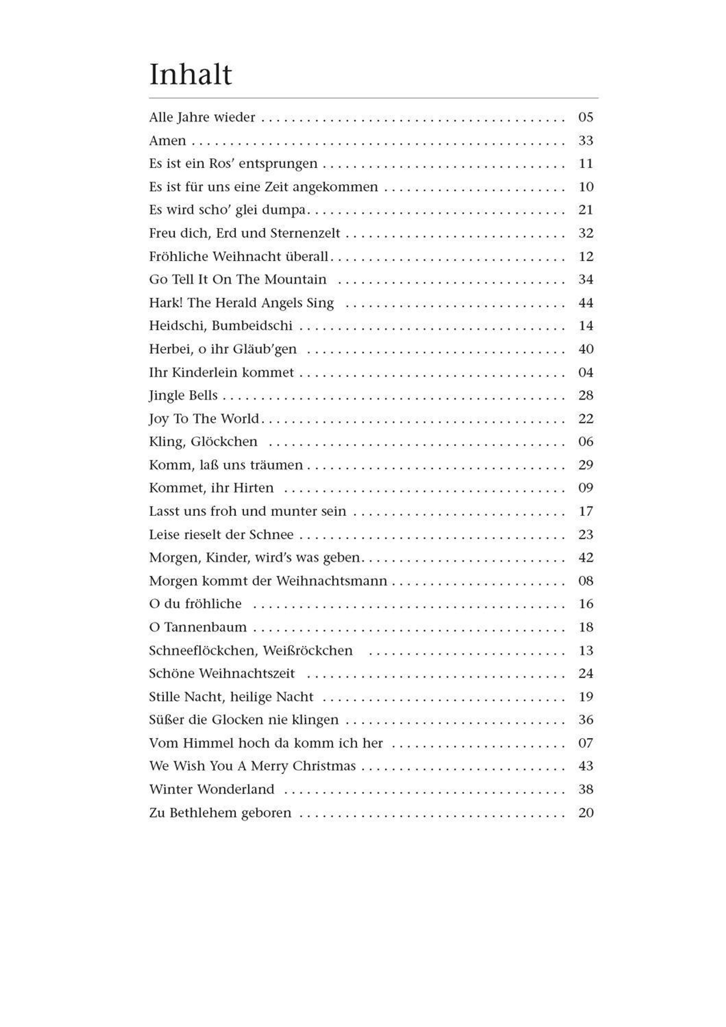 Eine einzigartige Sammlung der 31 schönsten und meistgespieltesten Weihnachtslieder für Akkordeon, ideal für Anfänger und Wiedereinsteiger. Alle Stücke sind leicht spielbar und in angenehmen Tonarten arrangiert. Dieses Buch ist auch bestens geeignet für den Unterricht. Zu allen Liedern gibt es zusätzlich Songtexte und Akkorde. Über die QR-Codes gelangt man zu professionellen Playbacks, die man ganz einfach über Smartphone oder Tablet abspielen kann. Denn mit einer kompletten Band im Hintergrund macht das Spielen und Singen so richtig Spaß. Natürlich können die Weihnachtslieder auch solo (also ohne Playback-Begleitung) gespielt werden.
