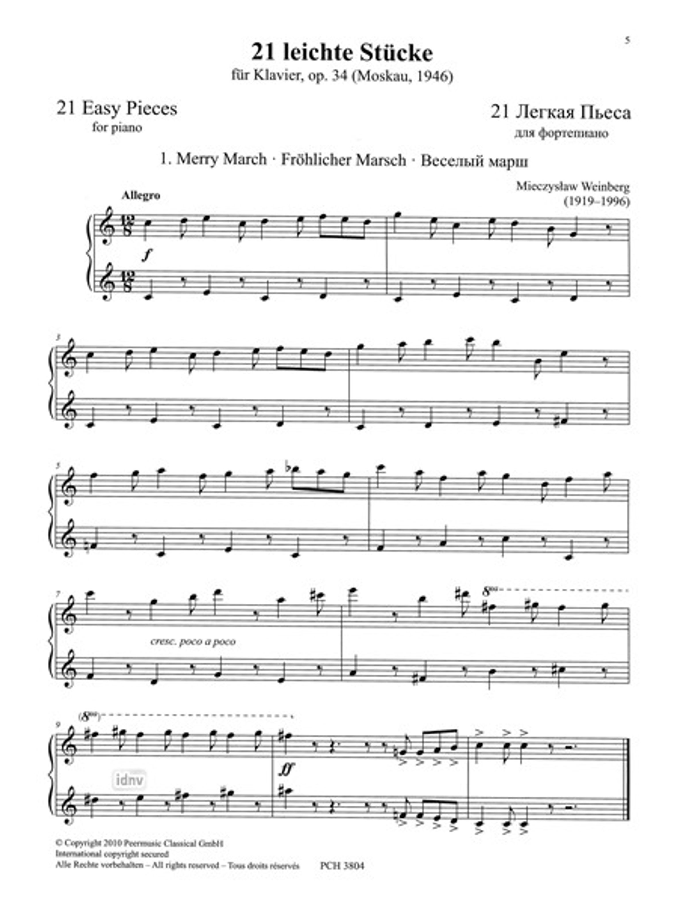 Mieczyslaw Weinberg: 21 leichte Stuecke fuer Klavier op. 34 (1946)