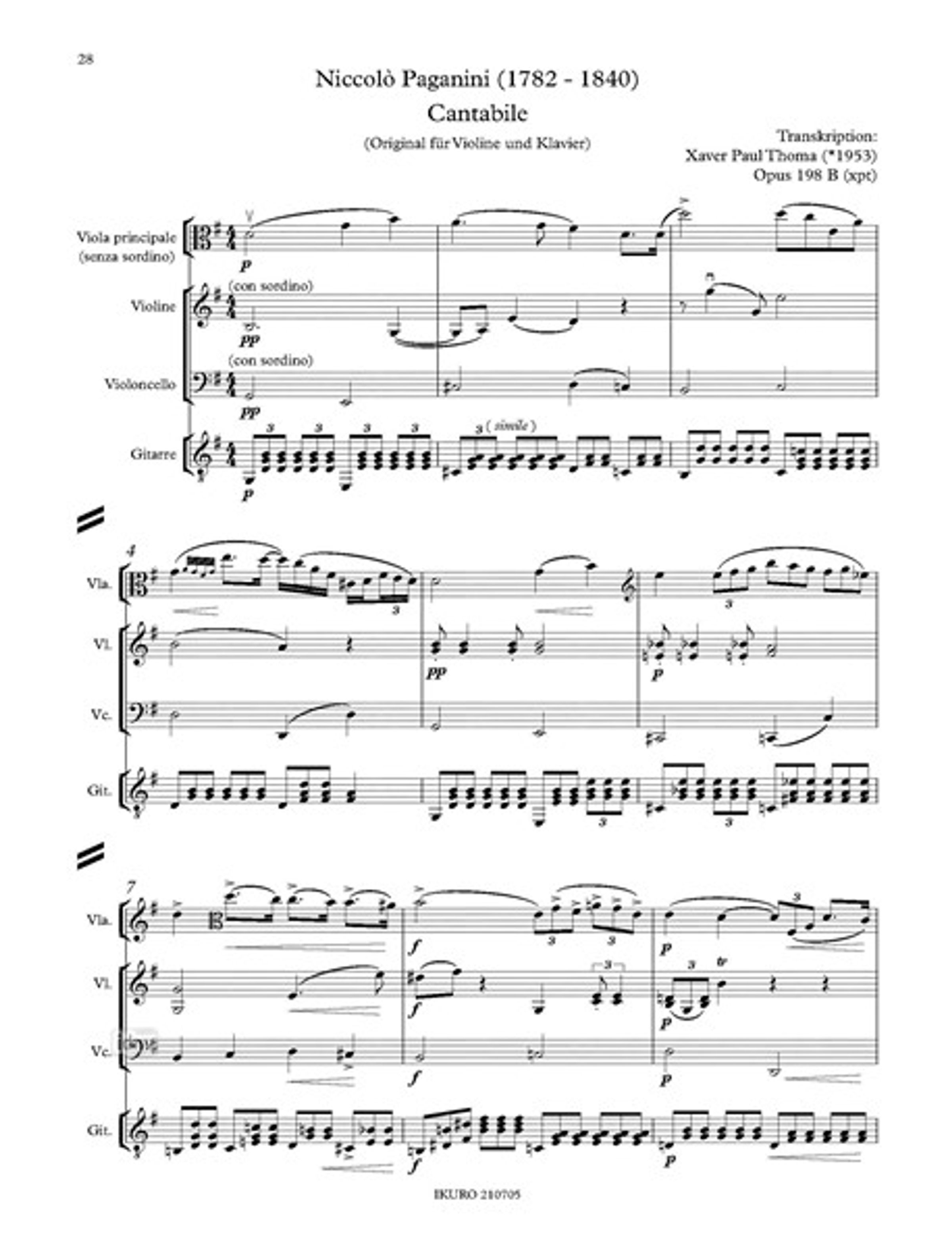 - Einrichtung für Viola principale, Violine, Violoncello und Gitarre