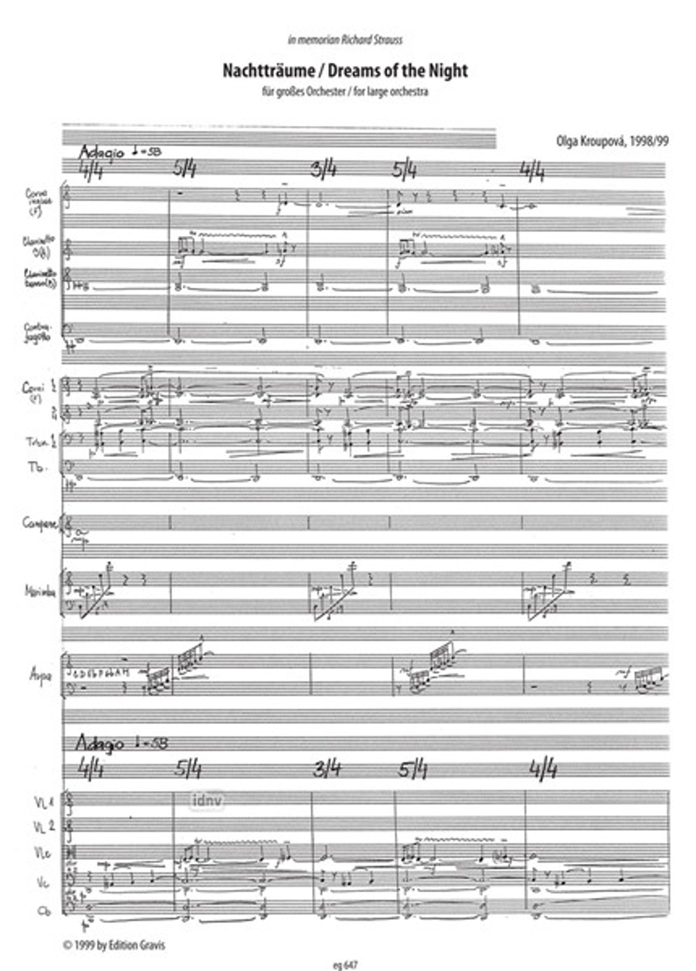 Olga Kroupova: Nacht-Träume (oder Nachtträume)/Dreams of the Night für großes Orchester (1998)
