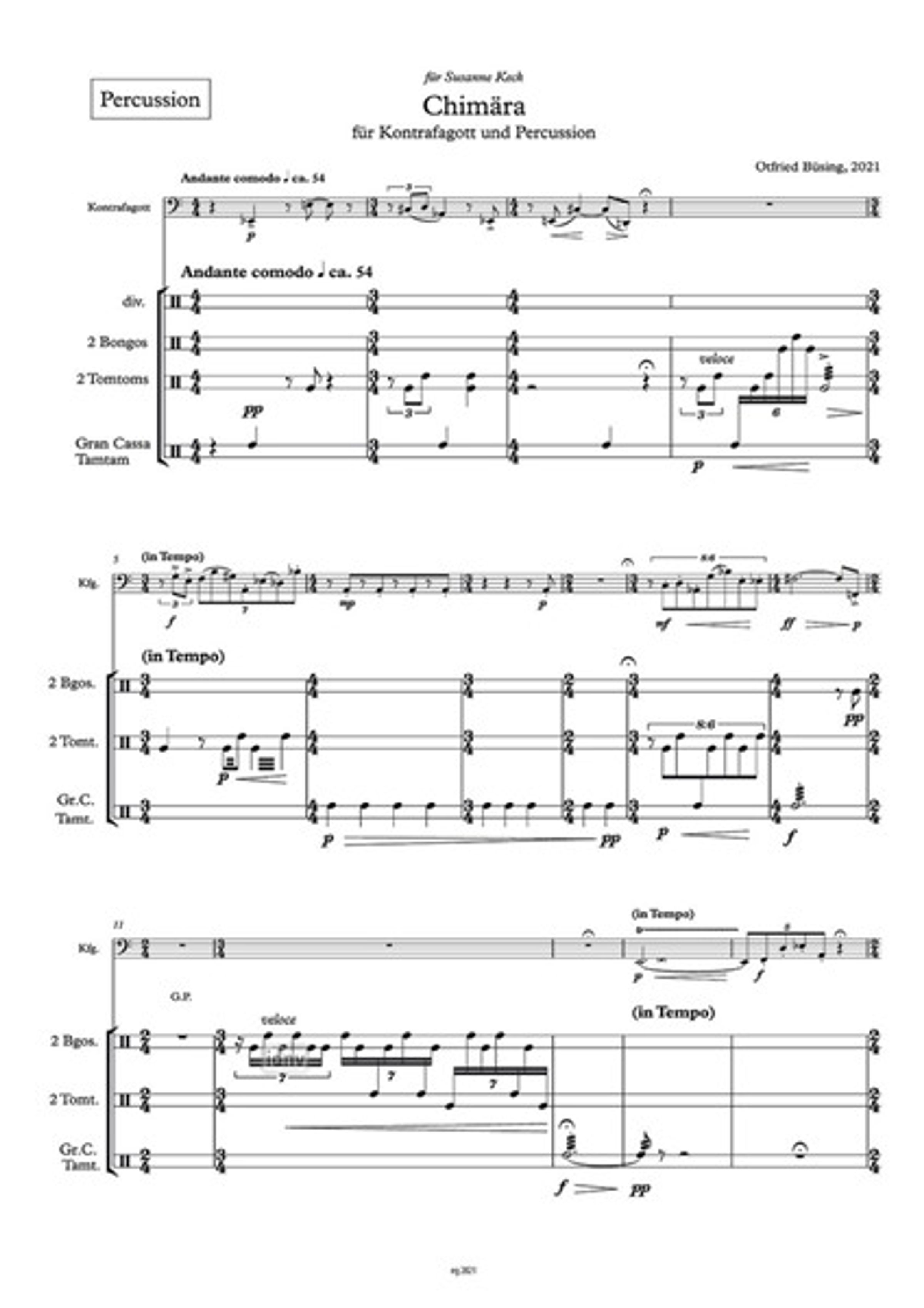 Otfried Büsing: Chimära für Kontrafagott und Schlagzeug (2020)
