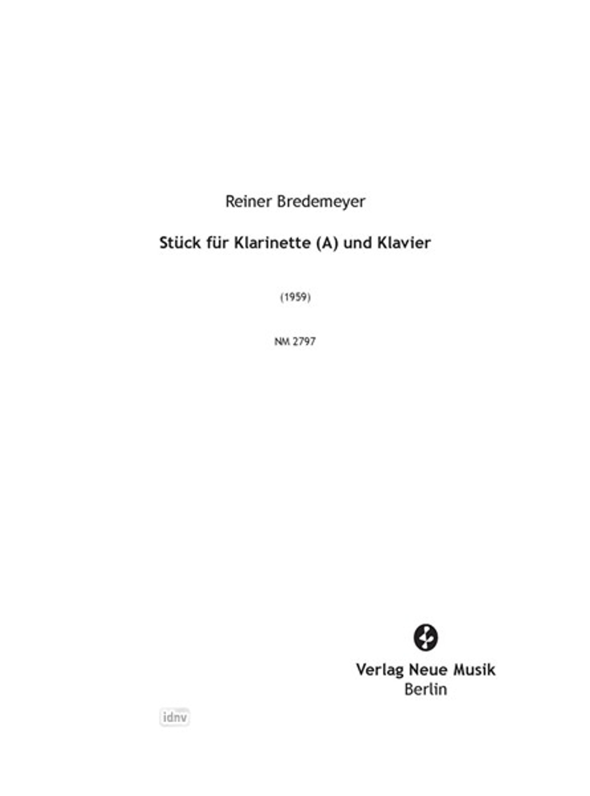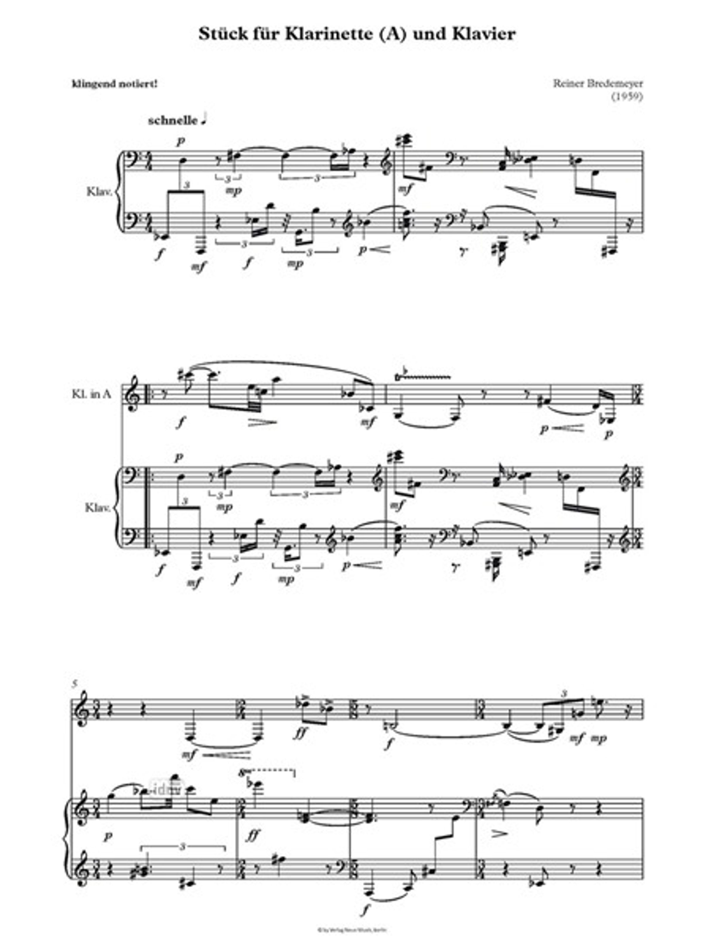 Reiner Bredemeyer: Stück für Klarinette (A) und Klavier (1959)