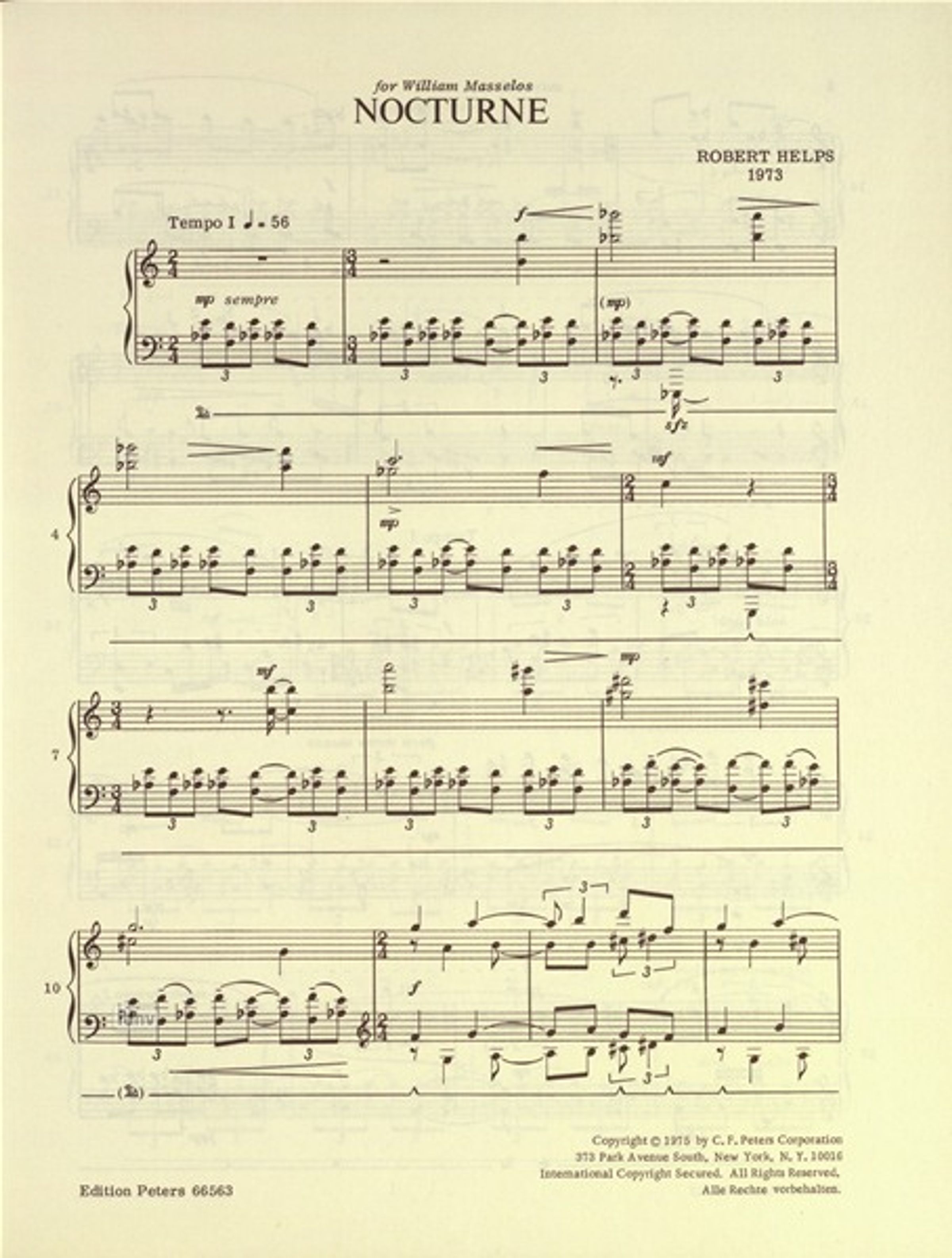 Robert Helps: Nocturne für Klavier (1973), Noten, Noten
