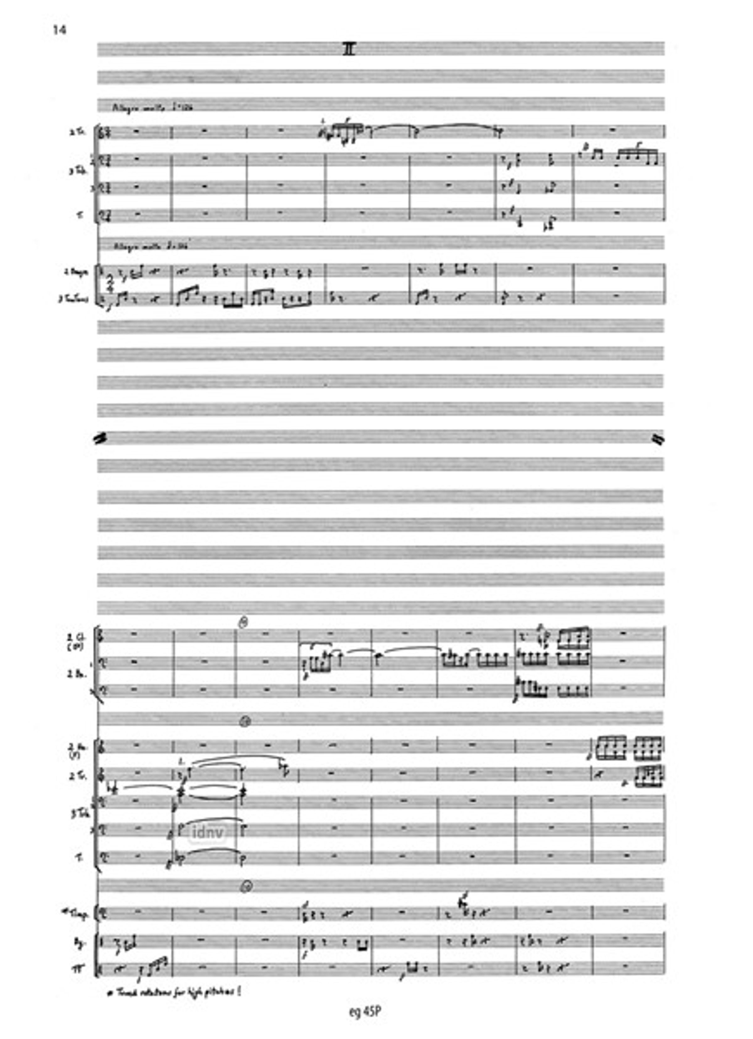 - Piccoloflöte (Flöte), Oboen (2), Klarinetten (2), Bass-Klarinette, Fagotte (2), Hörner (2), Trompeten (2), Posaunen (3), Tuba, Pauke, Schlagzeuge (2), Saxophonq
