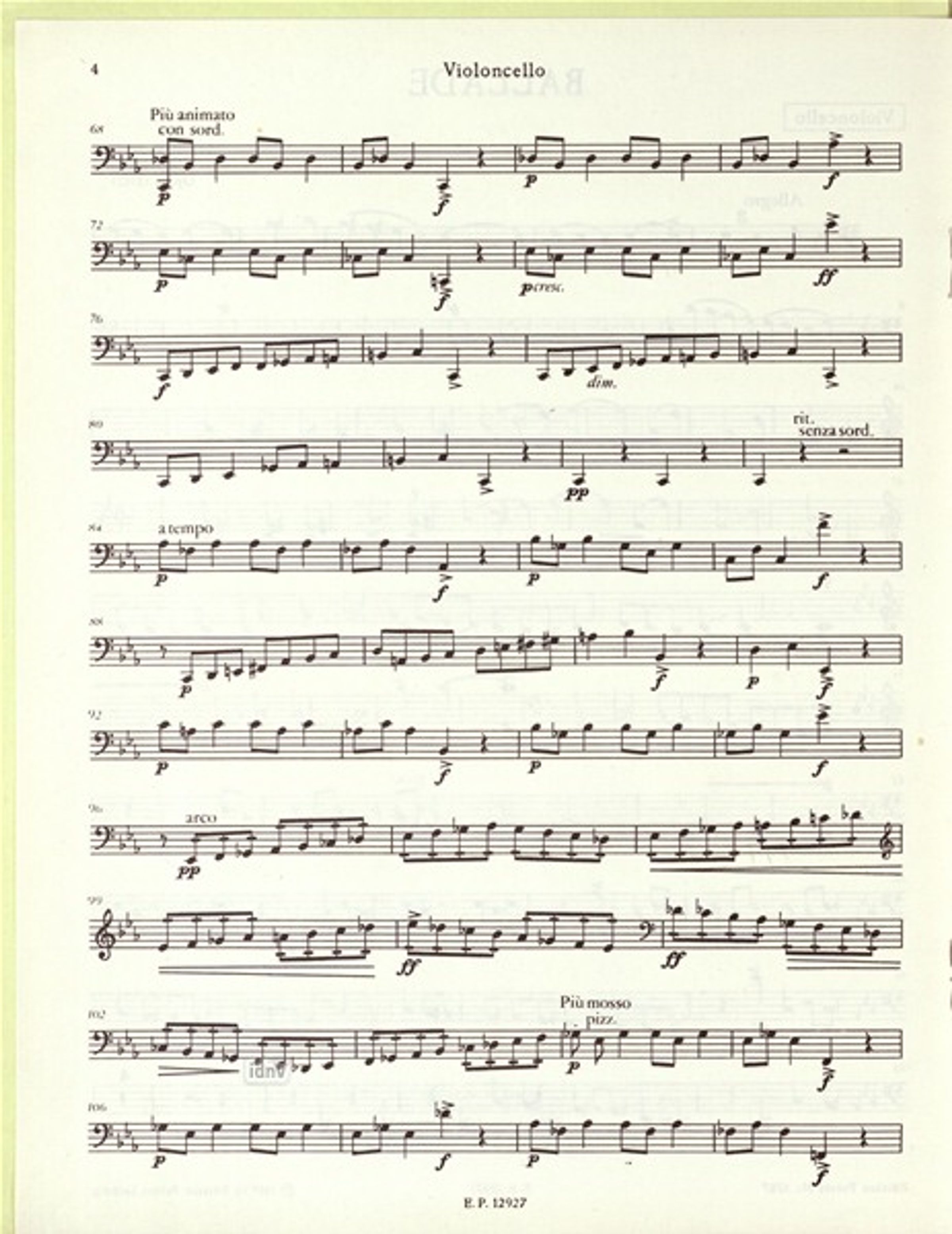 Sergei Prokofiev¿s Ballade for Cello and Piano Op. 15 was composed in 1912 while Prokofiev was still a student and marks an important milestone in his early work, having grown from an earlier violin sonata sketch. Formed as a single rhapsodic movement, the Ballade is characterised by striking contrasts and a bold harmonic language. Particularly striking is an extended pizzicato passage in the solo line, which reveals a rare and fascinating sonority within the instrument¿s repertoire. This work offers a challenging and a musically captivating enrichment of the chamber music repertoire.