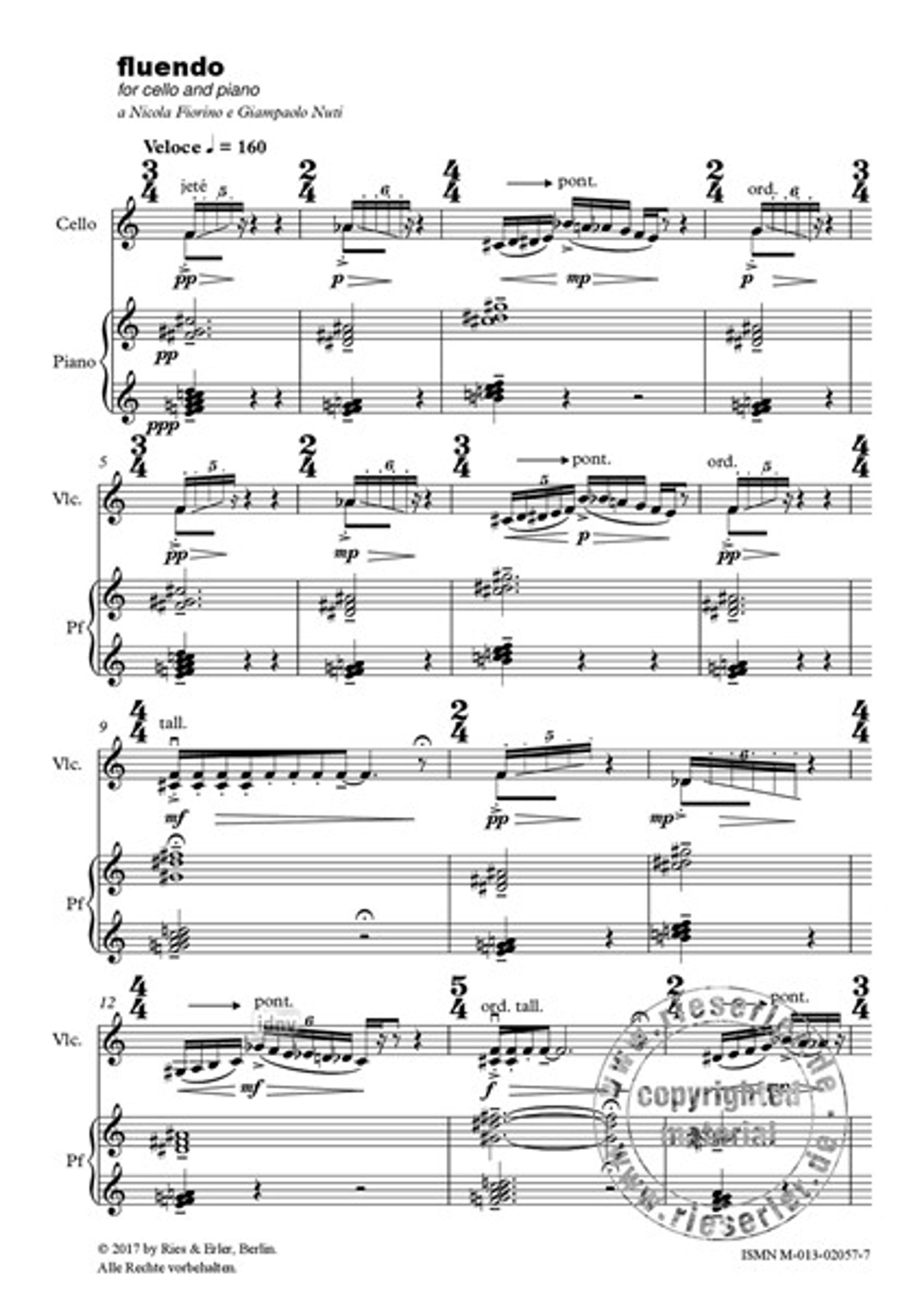Vito Palumbo: Fluendo for cello and piano, Noten, Noten