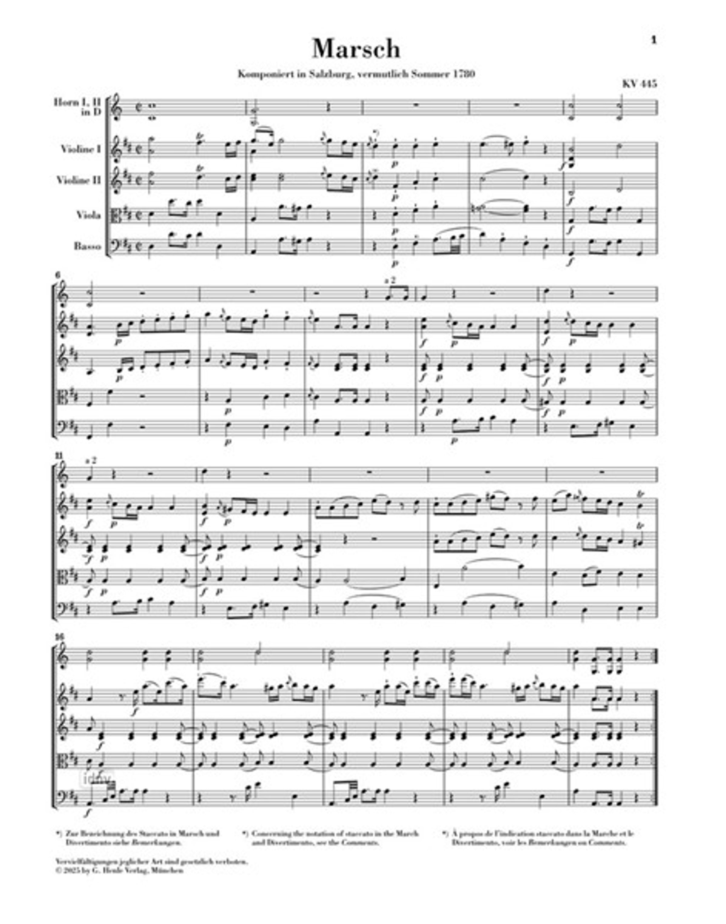 Mozart: Marsch KV 445, Divertimento KV 334 für 2 Hörner und Streicher, Urtext, G. Henle Verlag., Noten
