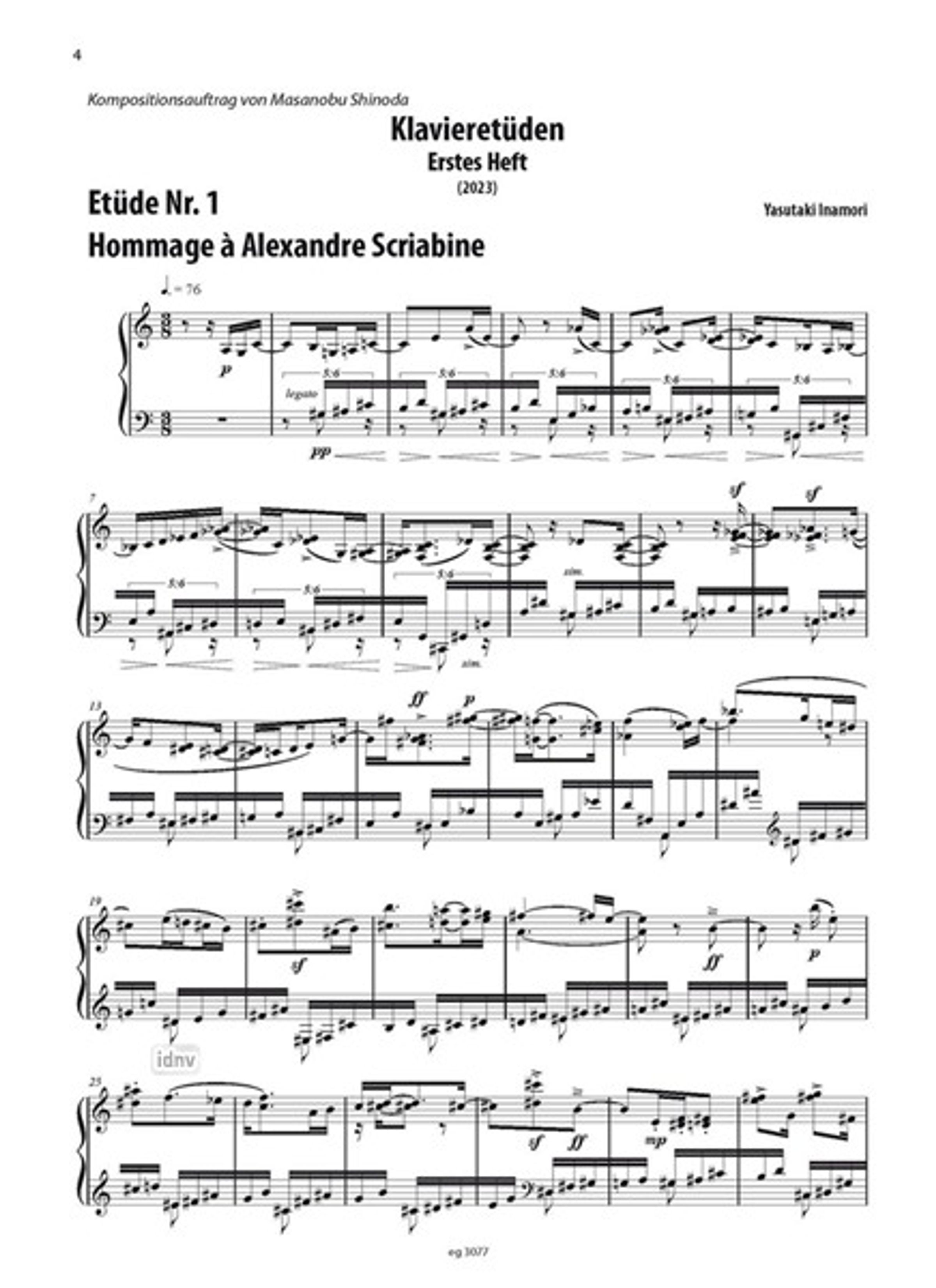 Yasutaki Inamori: Klavieretüden. Heft 1 für Klavier (2023)