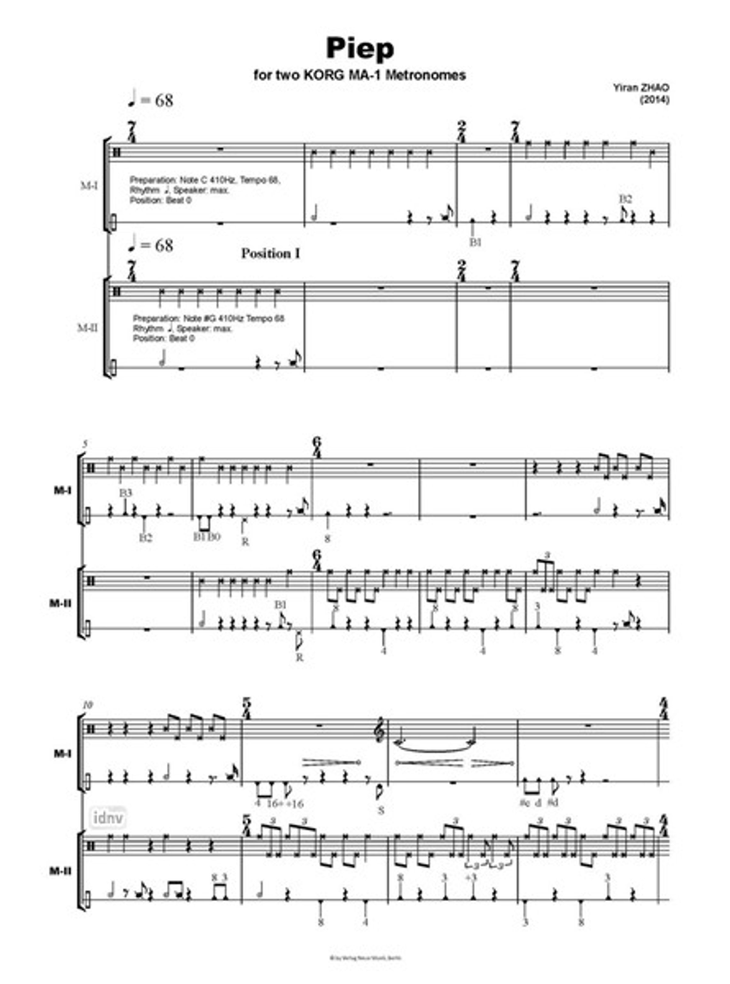 Yiran Zhao: PIEP für 2 Korg MA-1 Metronome (2014)